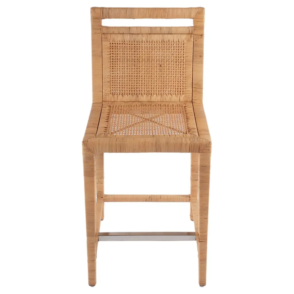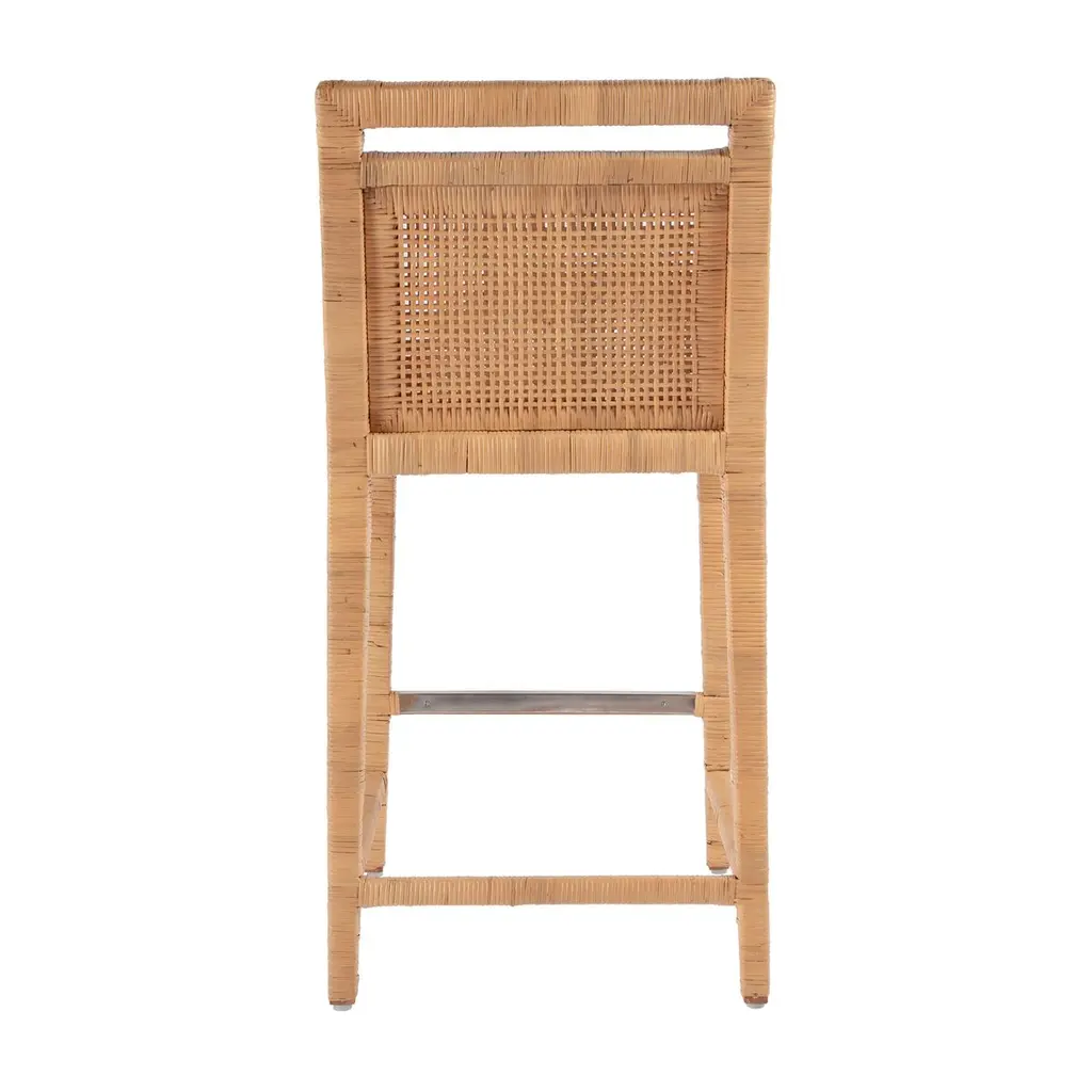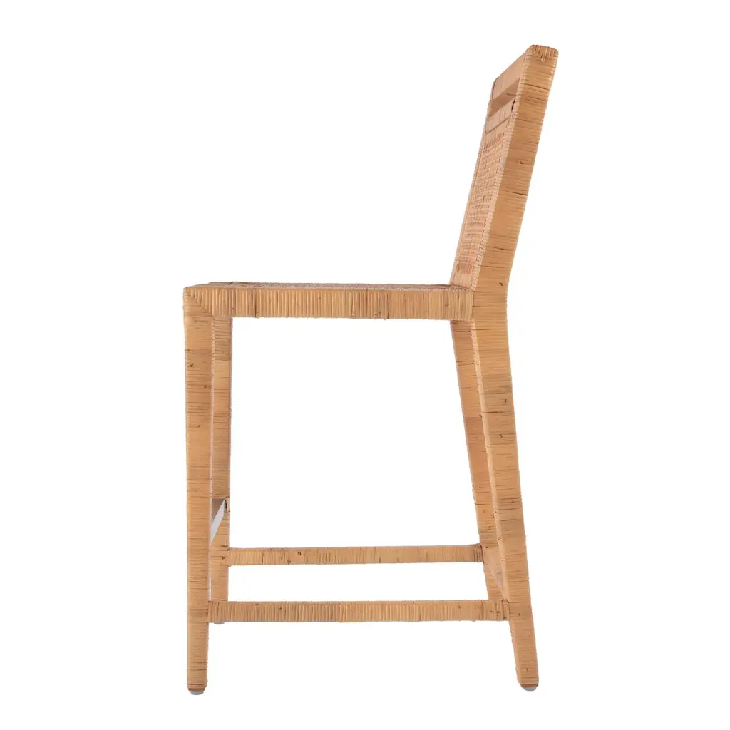 Elevate your dining space with the Rattan Woven Counter Stool. Its minimalist parsons design blends coastal charm with modern flair. Crafted from quality wood and enveloped in natural rattan, it offers a neutral palette for versatile styling.
