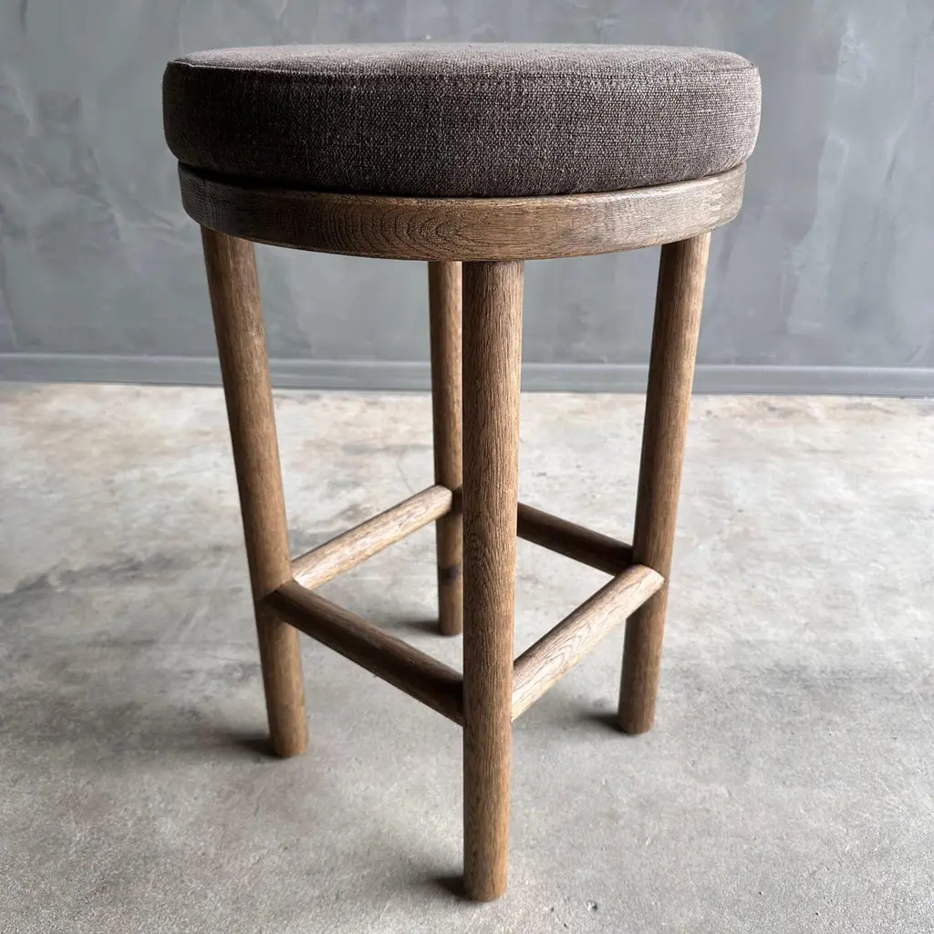 The Broc White Oak Counter Stool is not just a piece of furniture; it's a work of art. Crafted from high-quality white oak wood in our Montana Brown finish, this counter stool is not only durable and long-lasting but also incredibly stylish. The Belgian linen upholstery adds a touch of luxury, the color is warm coco brown, while Montana brown finish gives it a warm and inviting look. Whether you're hosting a dinner party or enjoying a quiet meal at home, the Broc Counter Stool is the perfect choice for any occasion.Broc Counter stool by Bloom Home Inc.Dimensions: 16" Seat DiameterHeight: 25" - 26" in heightA medium - firm density foam seat.
