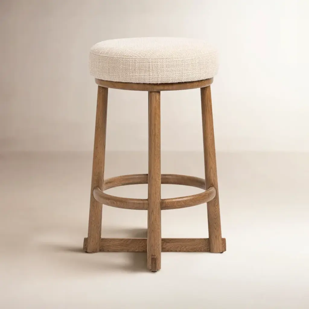 Broc Weathered White Oak Counter Stool With Linen Seat