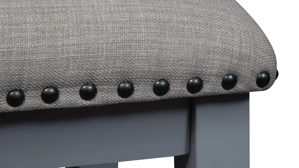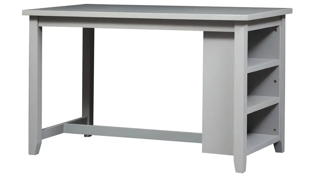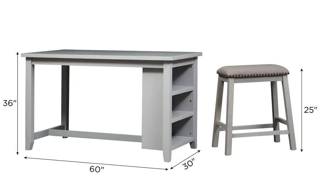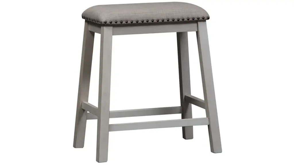Brook Creek 5-pc. Counter Set features bookcase table with three fixed shelves for more storage, tapered legs, and four padded upholstered counter height stools with accent nail heads. Perfect for small space dining or home office area. Brook Creek offers multiple finish options. A casual styling that fits into any d_cor.