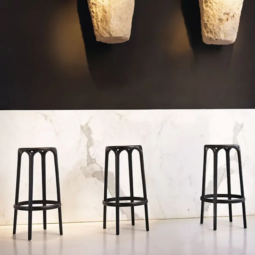 One of the world's most iconic bridges, the Brooklyn bridge represents the marriage between the future and the past, timeless as it overlooks New York City. Designer Eugeni Quitlet with the Brooklyn Counter Stool - Set of 4 from Vondom captures the spirit of the bridge, through the elegance of its silhouette. Long slender legs are ordered around a ringed footrest, made from Injected Polypropylene with Fiberglass, they arch softly at the seat, subtly illustrating the curving lines created by the bridge.
