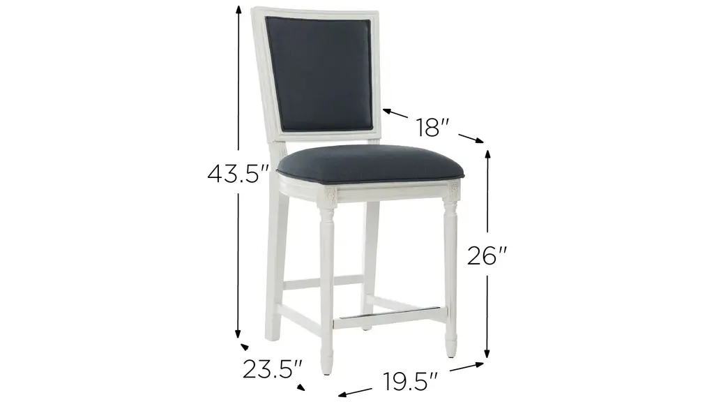 Bring refined living to any dining area with this Buchanan Counter Stool. A modern spin on a beloved classic, Buchanan brims with French farmhouse charm in its carved floral details on a distressed white wooden frame. Navy linen gives a soft contemporary touch. Sold in sets of two.