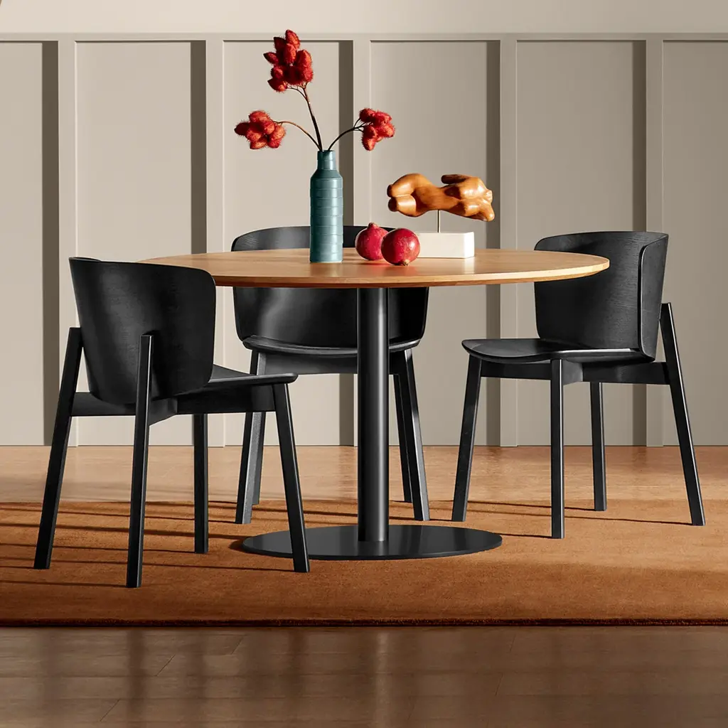 A wise person once said that wood is good. Buddy is here to prove it. A molded ply back wraps to hug and gently kiss a curved wood seat. Solid wood legs provide a sturdy and elegant base while subtle wood dowel details keep it all feeling special. Also available in bar and counter stool.