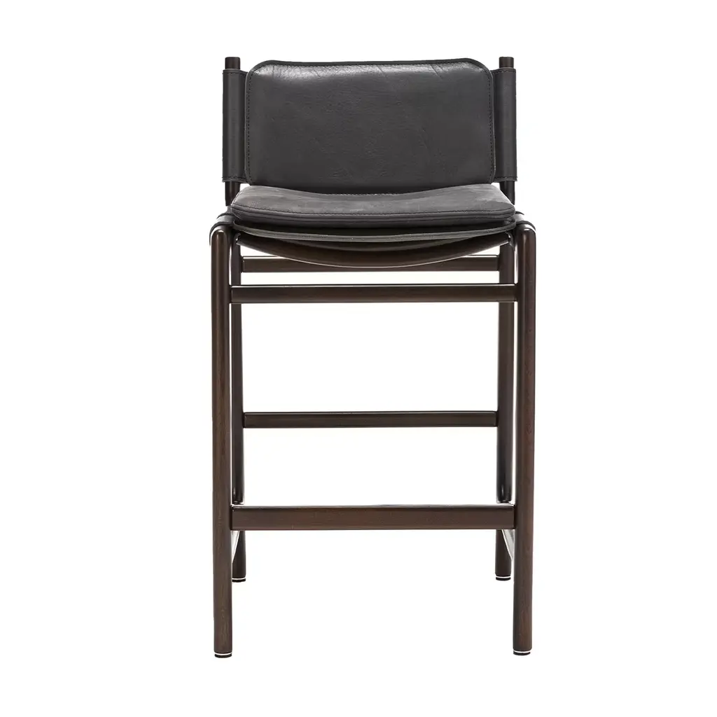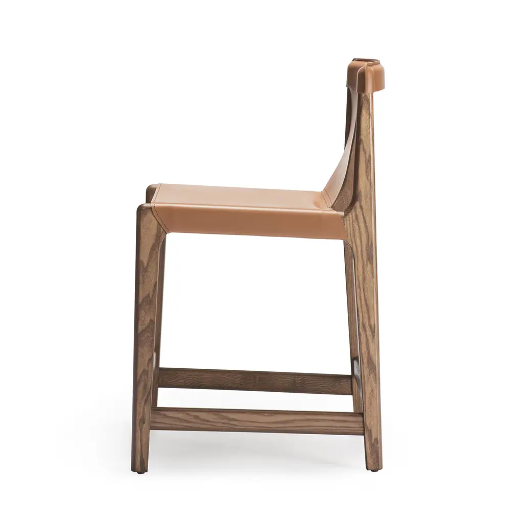 Burano counter stool 24" is made of ash wood. The double layer of mid-grain leather is the distinctive feature of this collection, which is perfectly suited to domestic environments such as dining rooms, but also to contract environments. The mid-grain leather is a structural part of the collection: the underlying canvas makes the seat resistant, facilitating comfort and functionality that extends also to the slightly inclined and welcoming backrest.