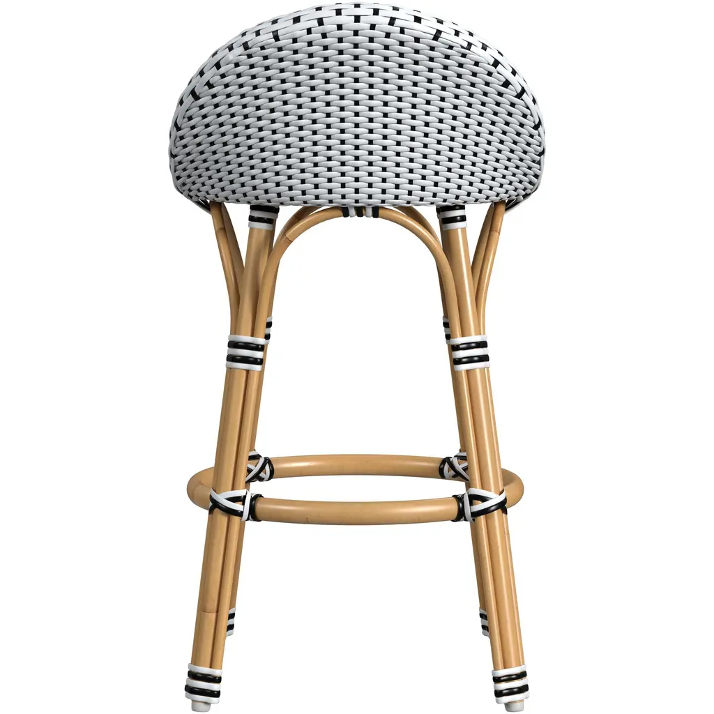 Butler Specialty Company Tobias Outdoor Rattan and Metal Low Back Counter stool, Black and White