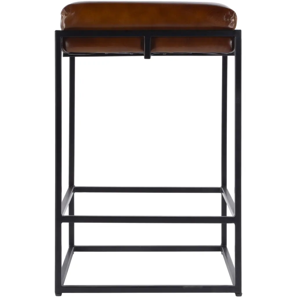 Butler Specialty Company Eldridge 26 in. Seat Height Leather and Iron Backless Counter Height Stool with Footrest, Black, Brown