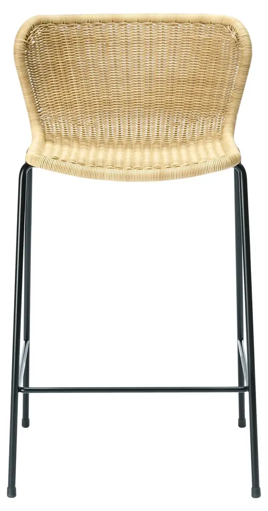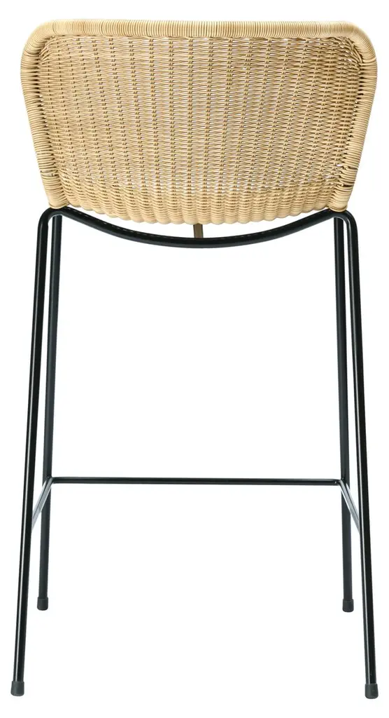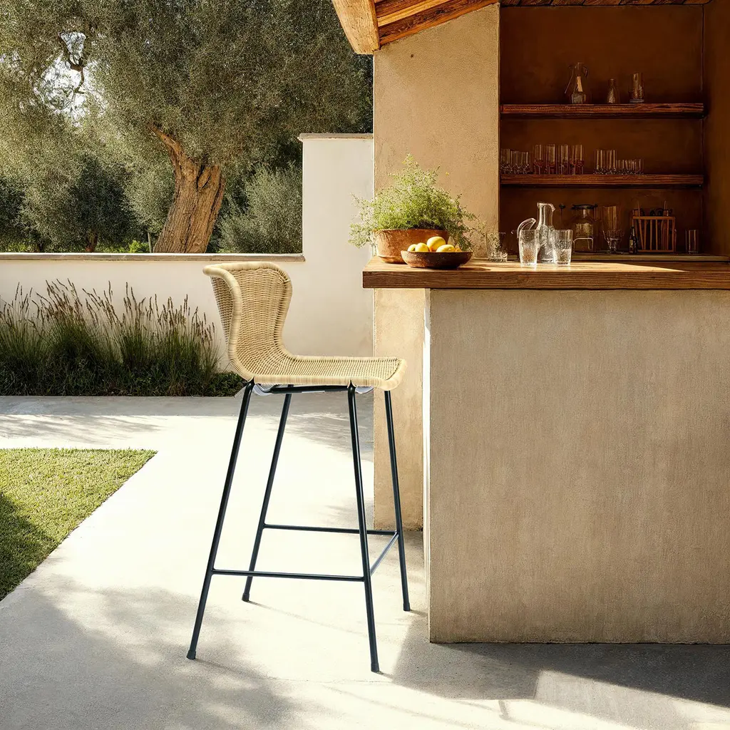 Fluid curves add to the gracefulness of this counter stool, which is made with powdered steel and all-weather wicker so that you can enjoy it outdoors as well as inside.