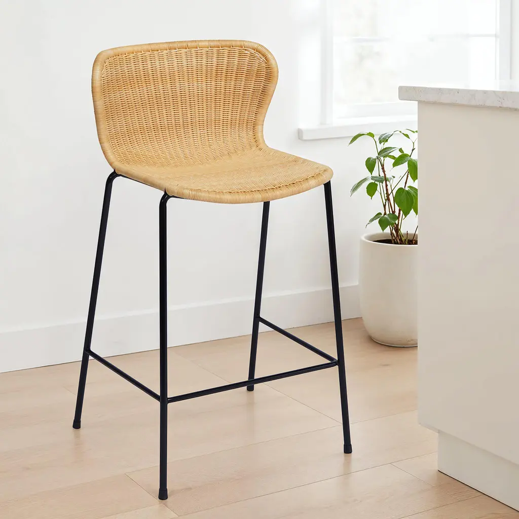 Fluid curves add to the gracefulness of this counter stool, which is made with woven rattan that includes a protective outer layer for added durability.