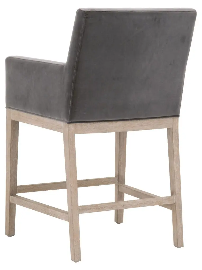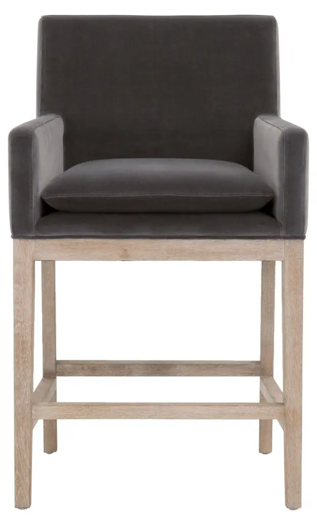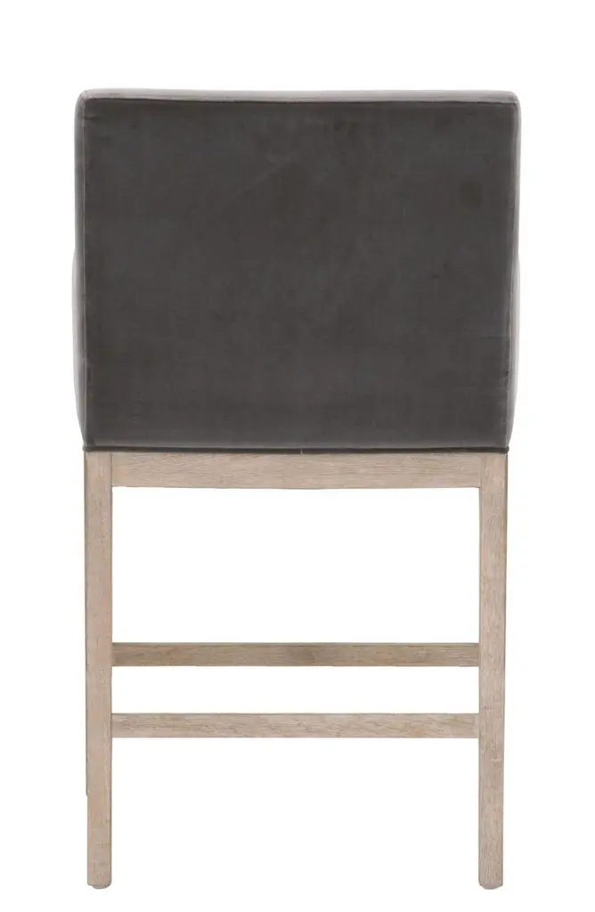 The cerused finish highlights the rich figuring of the durable oak, which is beautifully complemented by the lush gray velvet upholstery.