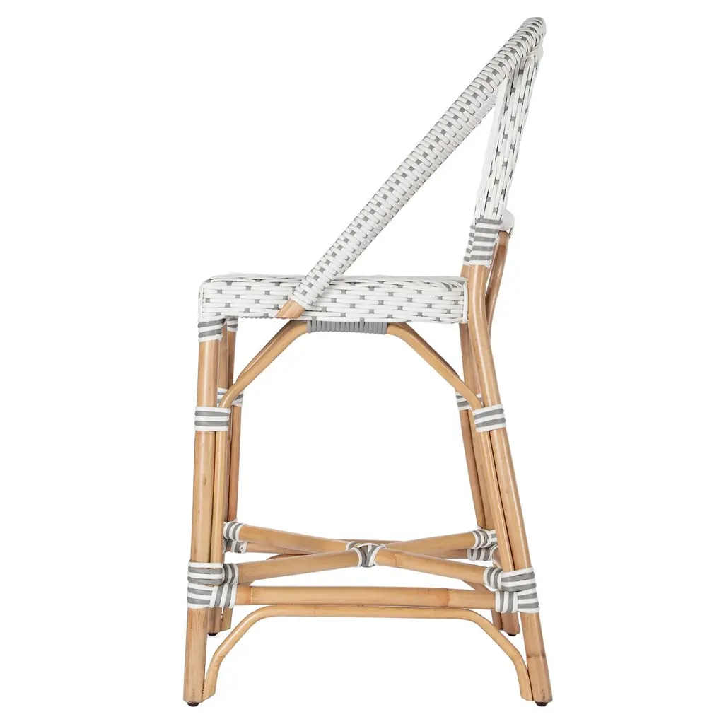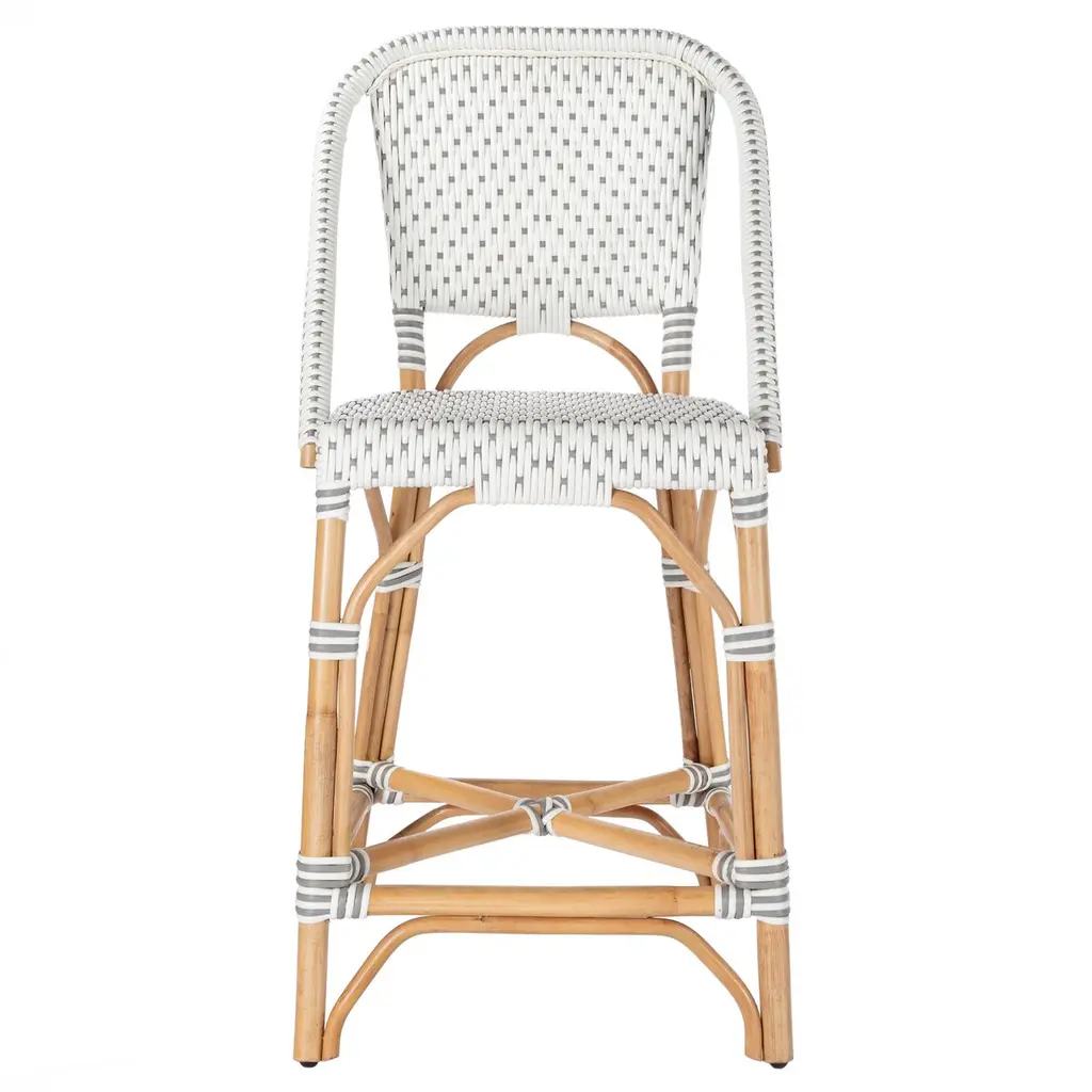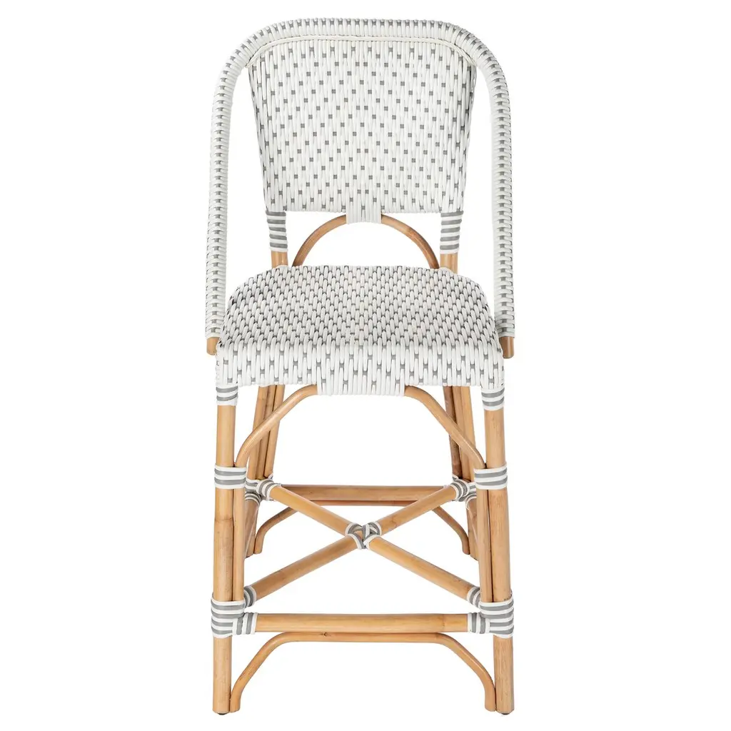 Function, form, and fun all come together in this exquisite counter chair. Its simplistic design is beautifully enhanced by a touch of contemporary flair. The intricate patterned weave and detailed chair arms showcase a dedication to craftsmanship. Reminiscent of the charming outdoor cafes on the streets of Paris, it invites you to imagine sipping an aperitif in style. This fresh new look will breathe life into your kitchen dining or pub dining space, creating an atmosphere of elegance and romance.
