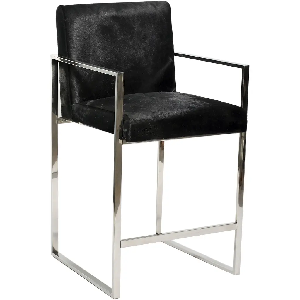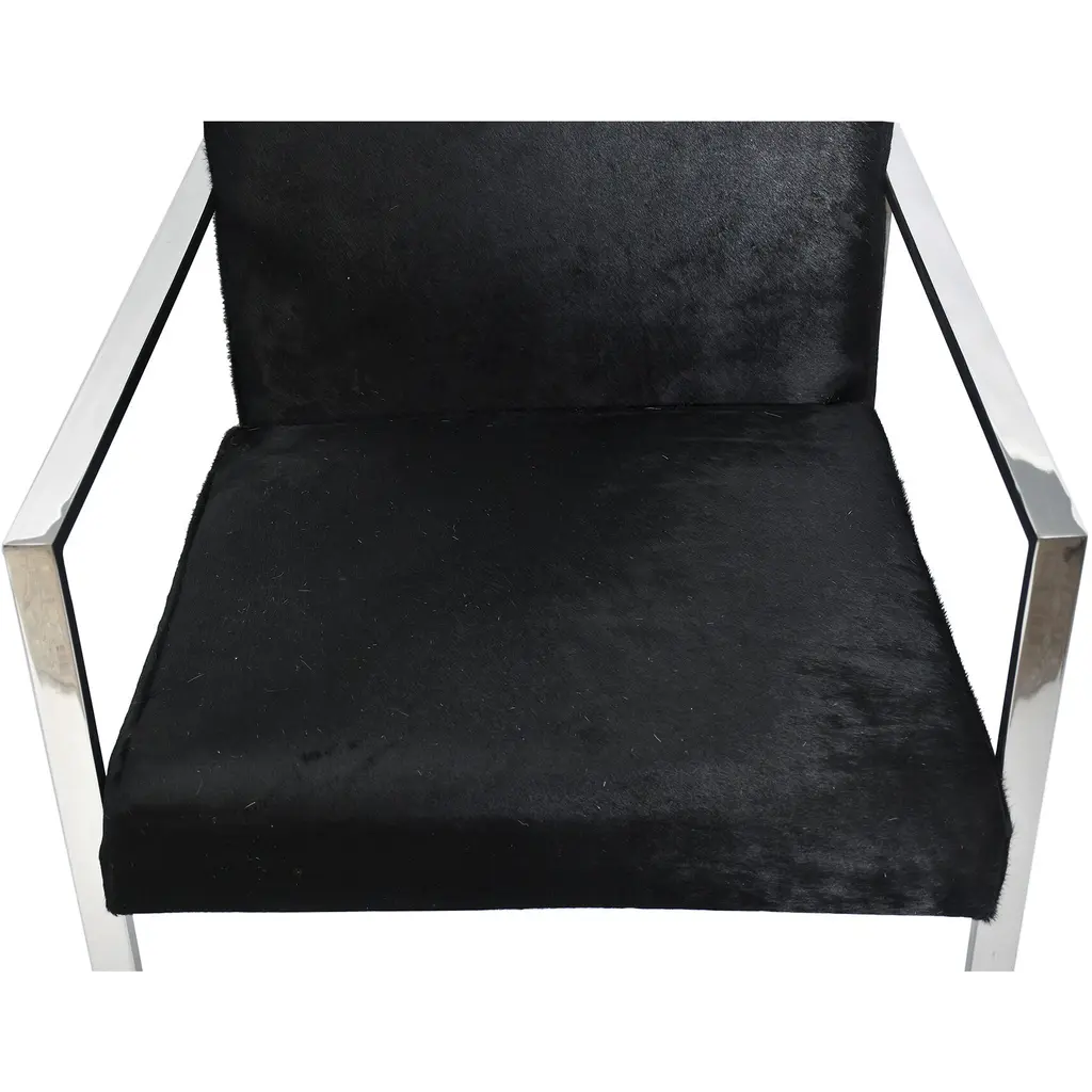 This exquisite hairline leather seat is in a chrome finish. The frame is made out of stainless steel. It comes with cow hide fur, and the hides will naturally vary in color and tone.