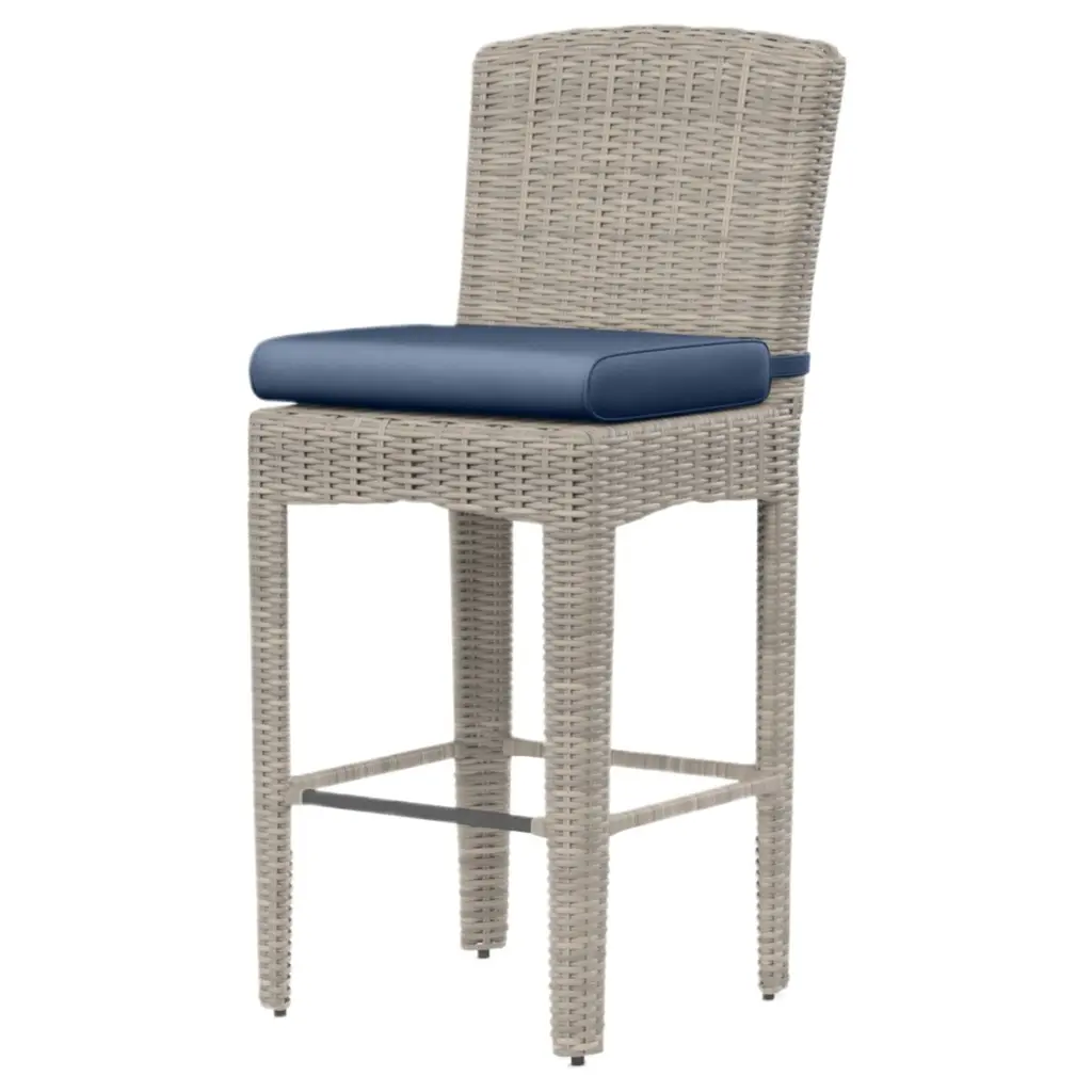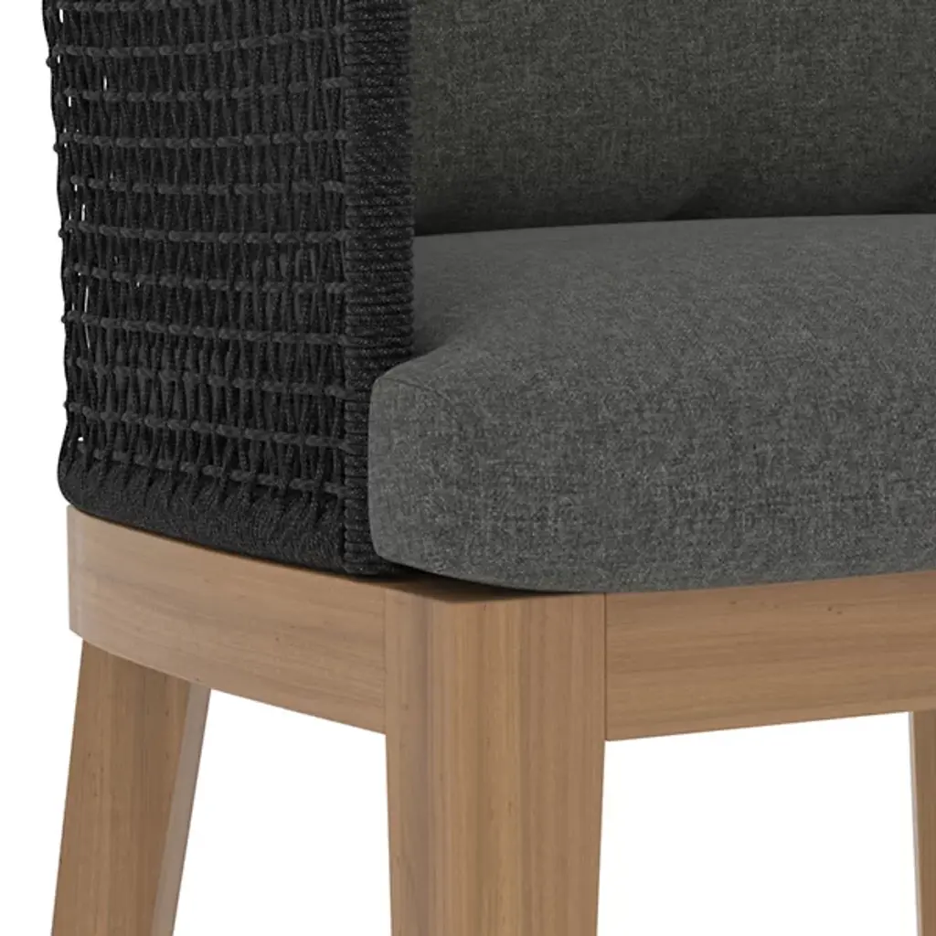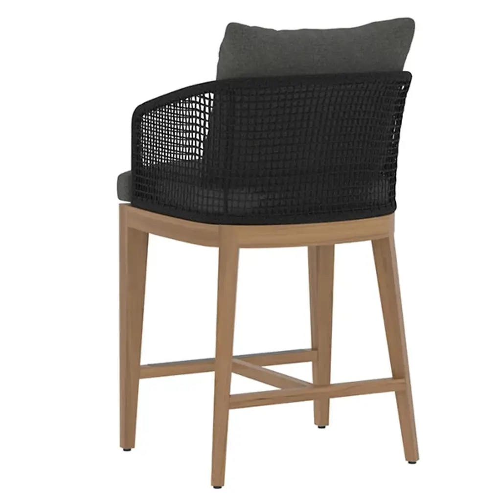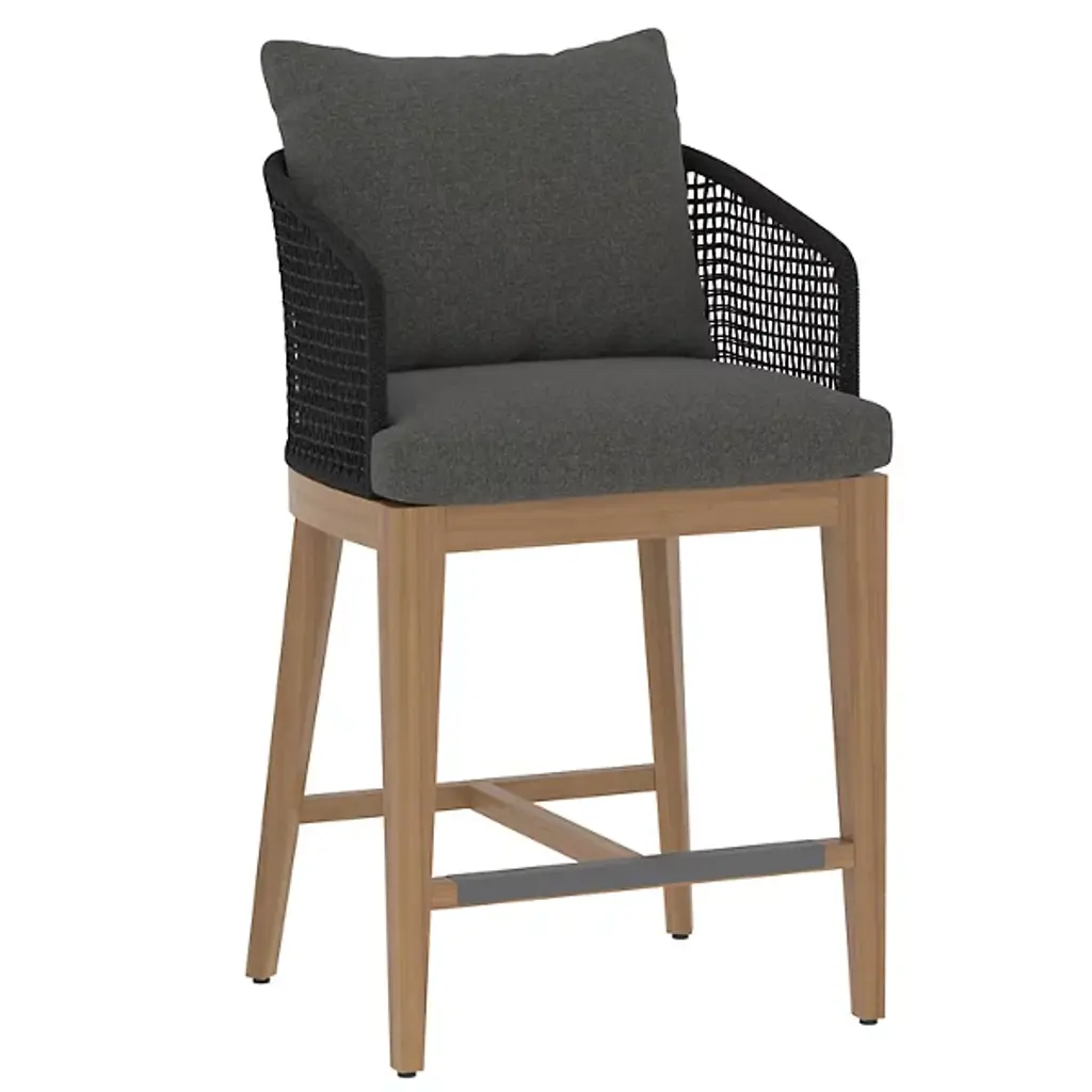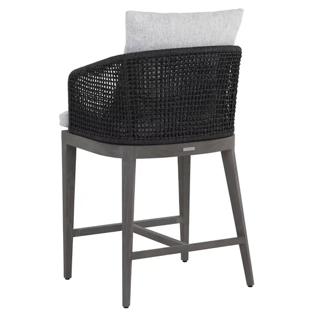 Experience indoor-outdoor comfort with the Capri Outdoor Counter Stool by Sunpan, a stunning addition to any setting. This inviting stool boasts a barrel back frame enveloped in a mix weave, perfectly paired with seat cushions in strong grey fabric for ultimate comfort. Anchored by a natural teak wood base that develops a charming silver-grey patina over time, this stool is designed to withstand outdoor elements with its high oil content. Handwoven with meticulous craftsmanship and equipped with weather-resistant, UV-protected cushions filled with Urecel QuickDry Foam, this stool effortlessly combines Coastal, Nautical, and California Modern styles, offering both durability and sophistication.