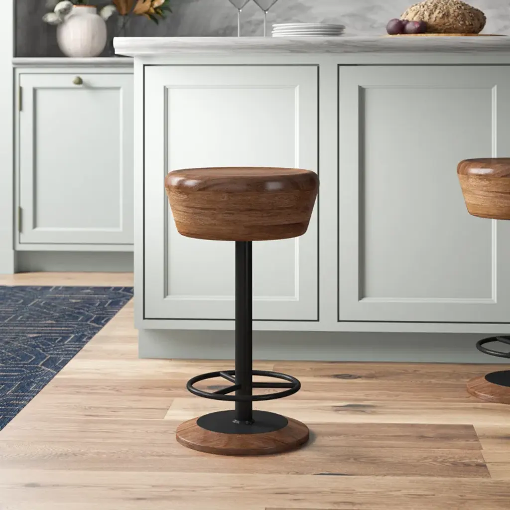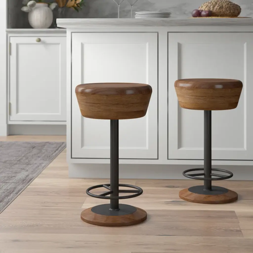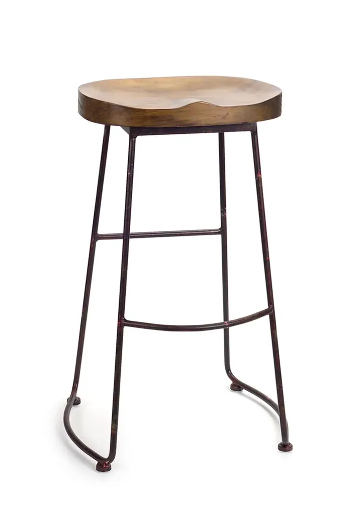 This wonderfully simple height stool features a natural iron frame and a solid natural wood seat