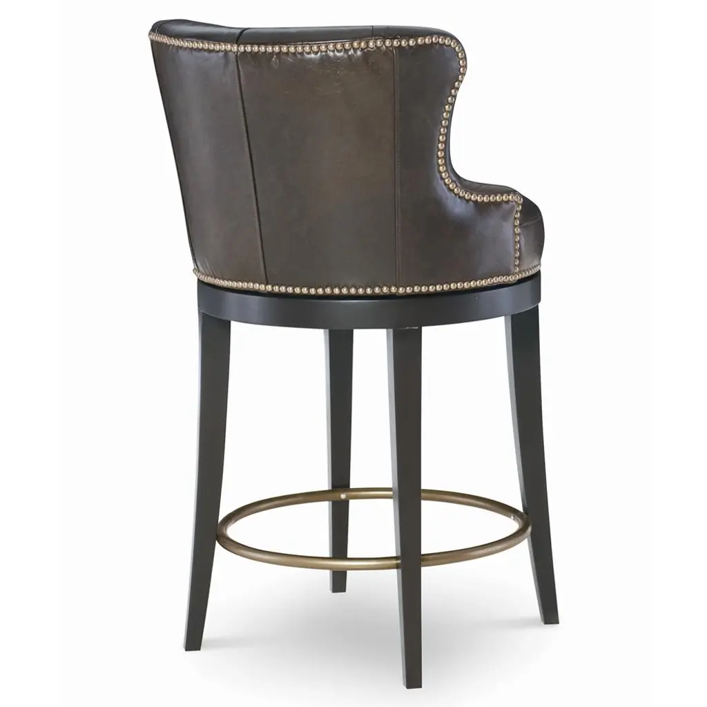 Century Forte Rustic Dark Brown Leather Tufted Nailhead Swivel Counter Stool