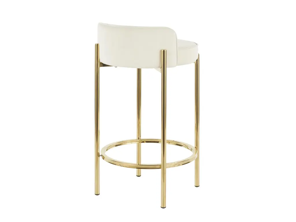 Add a dash of glam to your dining space with the Chlo Counter Stool. With a rich velvet upholstered seat and backrest, stylish tufting, and plush padding, the Chlo is accented by a luminous gold metal base. Available in a variety of colors, choose the one that fits your glam area the best!