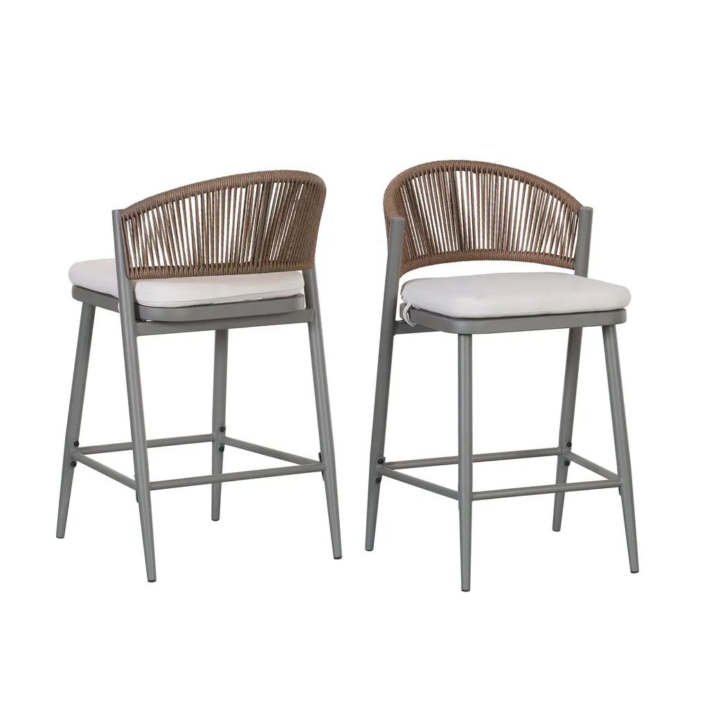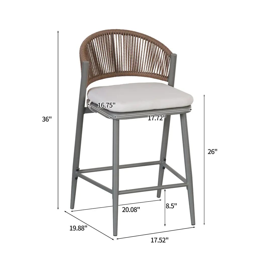 Stylish Counter-Height Seating: Enhance your outdoor dining or bar area with these modern counter stools. Featuring a beautifully woven scallop-shaped backrest and a sleek frame, they bring a refined and sophisticated look to any patio, deck, or garden setting. Lightweight and Rust-Resistant Frame: Constructed with a high-quality metal frame, these stools are both lightweight and incredibly durable. The rust-resistant finish ensures they withstand outdoor elements, providing long-lasting reliability for all your outdoor gatherings. Handwoven PE Rattan for a Unique Touch: Designed with an intricately woven PE rattan backrest, these stools offer a breathable and stylish seating experience. The woven texture adds an organic charm while maintaining strength and durability for everyday outdoor use. Comfortable Water-Resistant Cushions: Topped with plush foam-filled cushions covered in water-resistant fabric, these stools provide exceptional comfort while remaining easy to maintain. Whether for morning coffee or evening cocktails, they deliver a perfect blend of style and function. Simple Assembly with Versatile Placement: This set includes all necessary tools and instructions for a quick and effortless setup. Designed for counter-height seating, they are ideal for outdoor bars, kitchen islands, or elevated dining areas, offering a stylish and practical solution for any space.