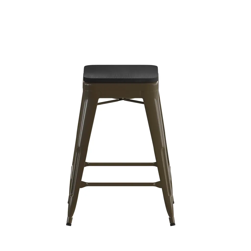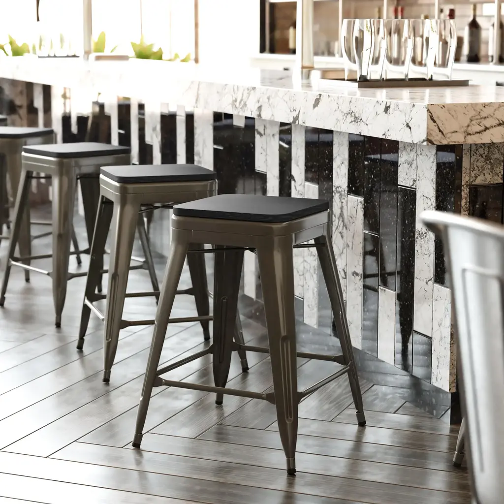 Cierra Set Of 4 Commercial Grade 24" High Backless Metal Indoor Counter Height Stools With All-Weather Poly Resin Seats