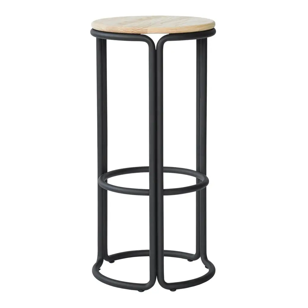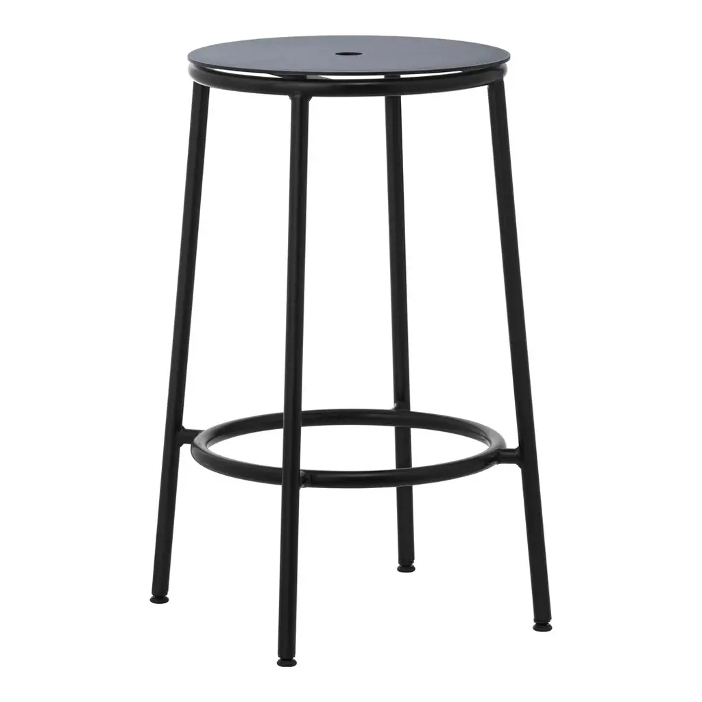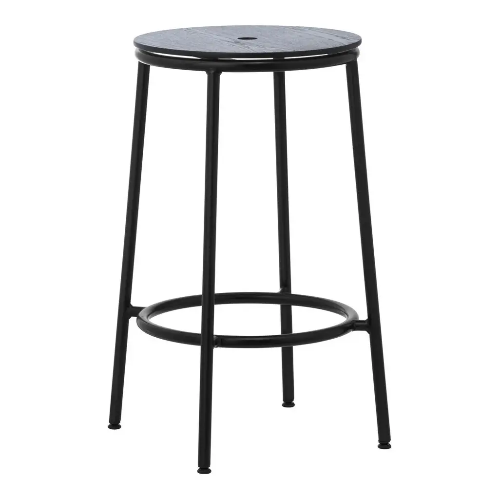 The Circa stool is a minimalistic and timeless stool comprising a steel tube frame and an oak veneer, aluminum or upholstered seat available in either textile or leather. The circular seat rests on a slender steel base in black powder steel. Available in three different sizes, Circa offers a timeless stool suitable for bars, kitchen islands, or extra seating by the dinner table.