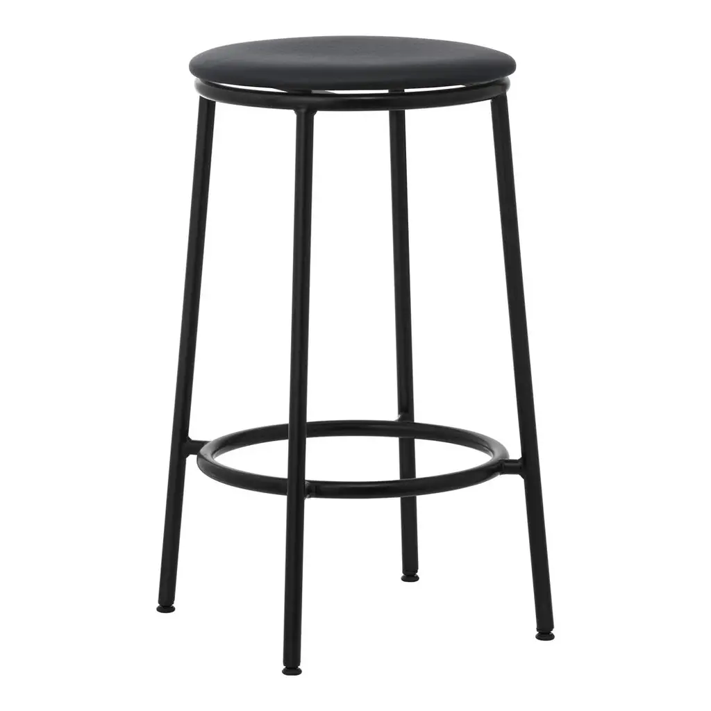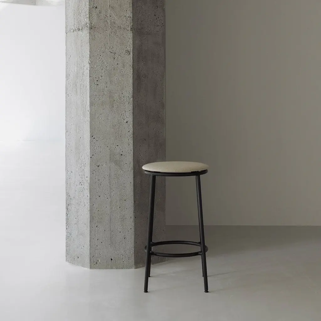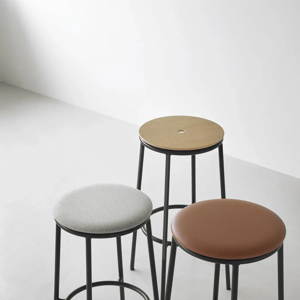 The Circa stool is a minimalistic and timeless stool comprising a steel tube frame and an oak veneer, aluminum or upholstered seat available in either textile or leather. The circular seat rests on a slender steel base in black powder steel. Available in three different sizes, Circa offers a timeless stool suitable for bars, kitchen islands, or extra seating by the dinner table.