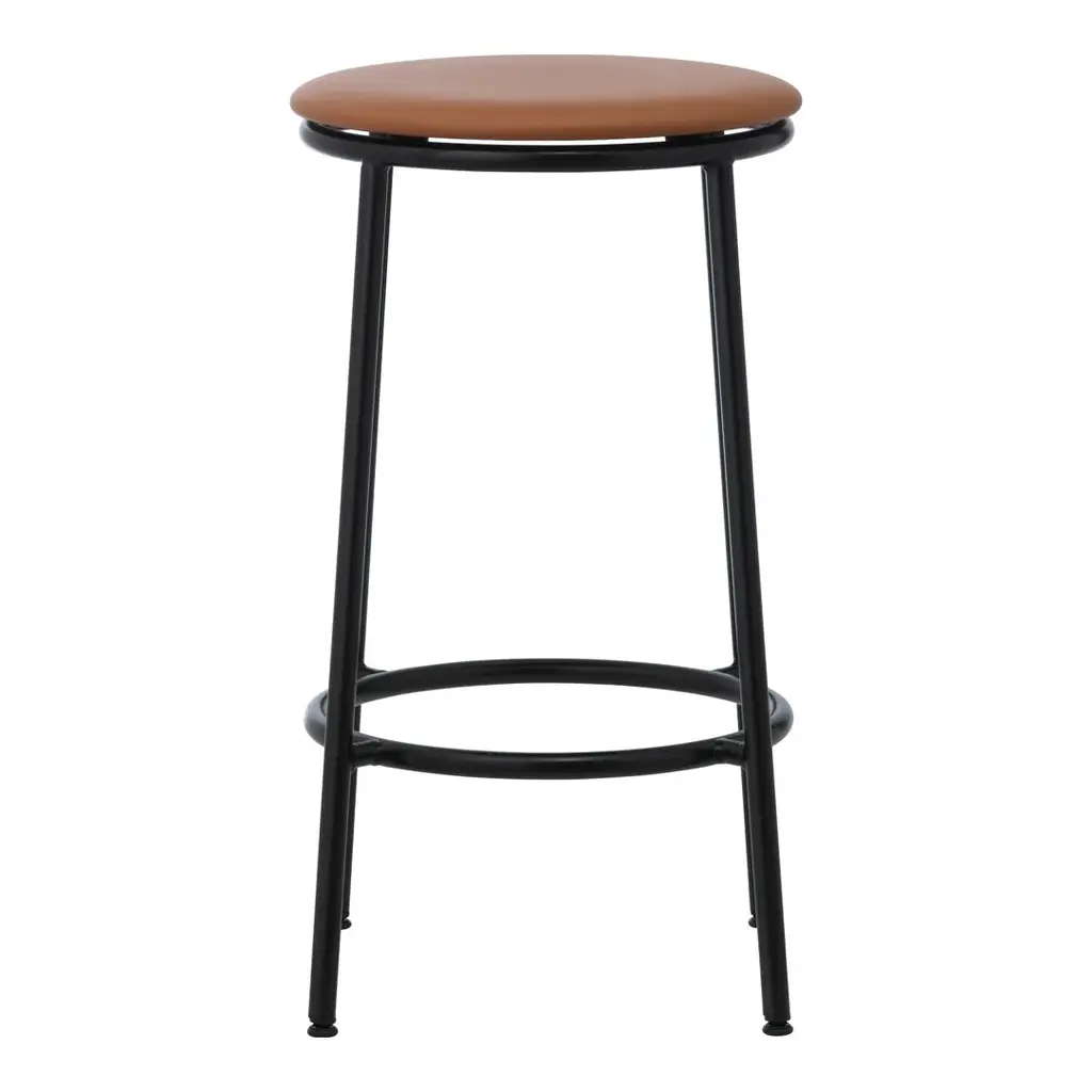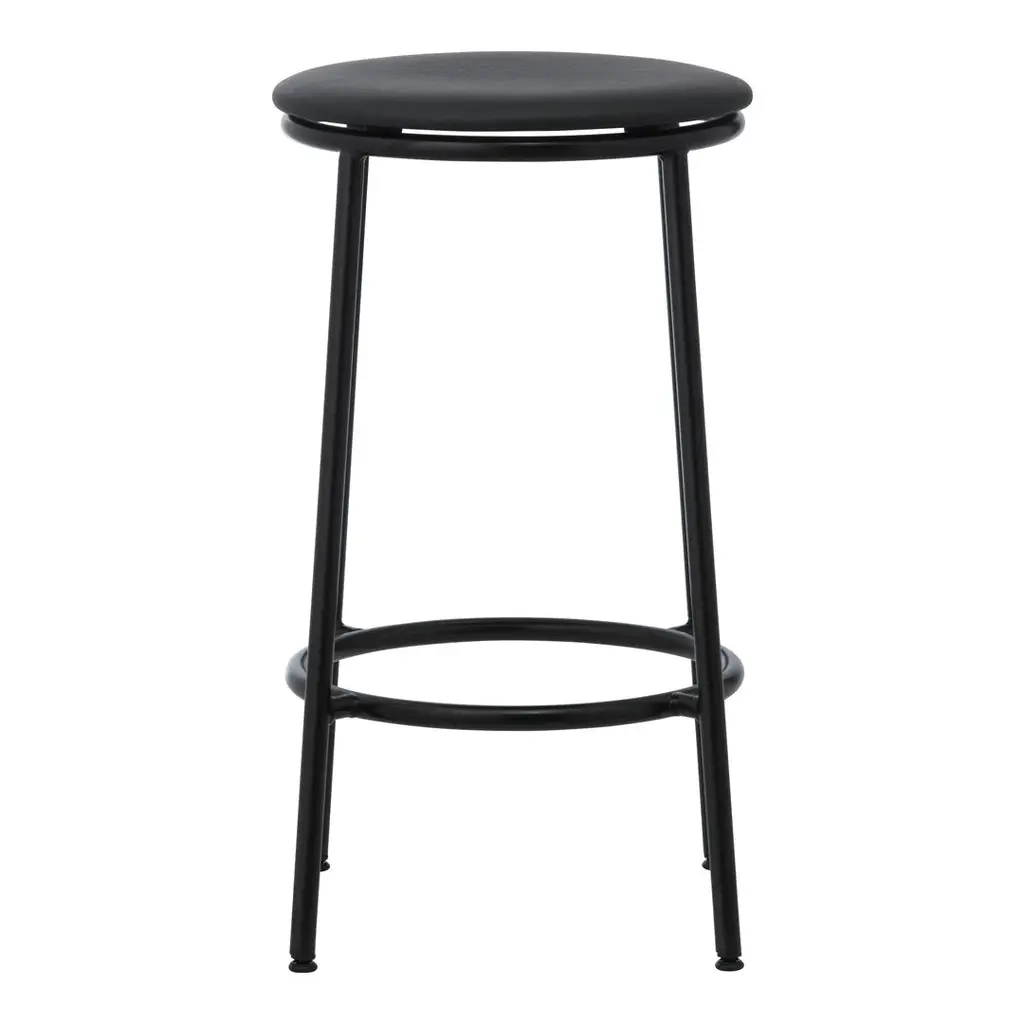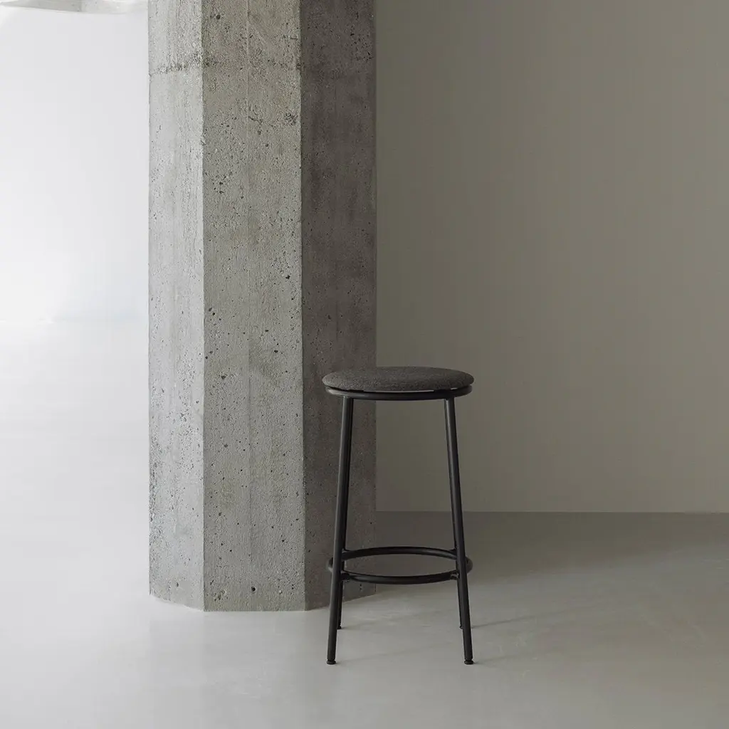 The Circa stool is a minimalistic and timeless stool comprising a steel tube frame and an oak veneer, aluminum or upholstered seat available in either textile or leather. The circular seat rests on a slender steel base in black powder steel. Available in three different sizes, Circa offers a timeless stool suitable for bars, kitchen islands, or extra seating by the dinner table.