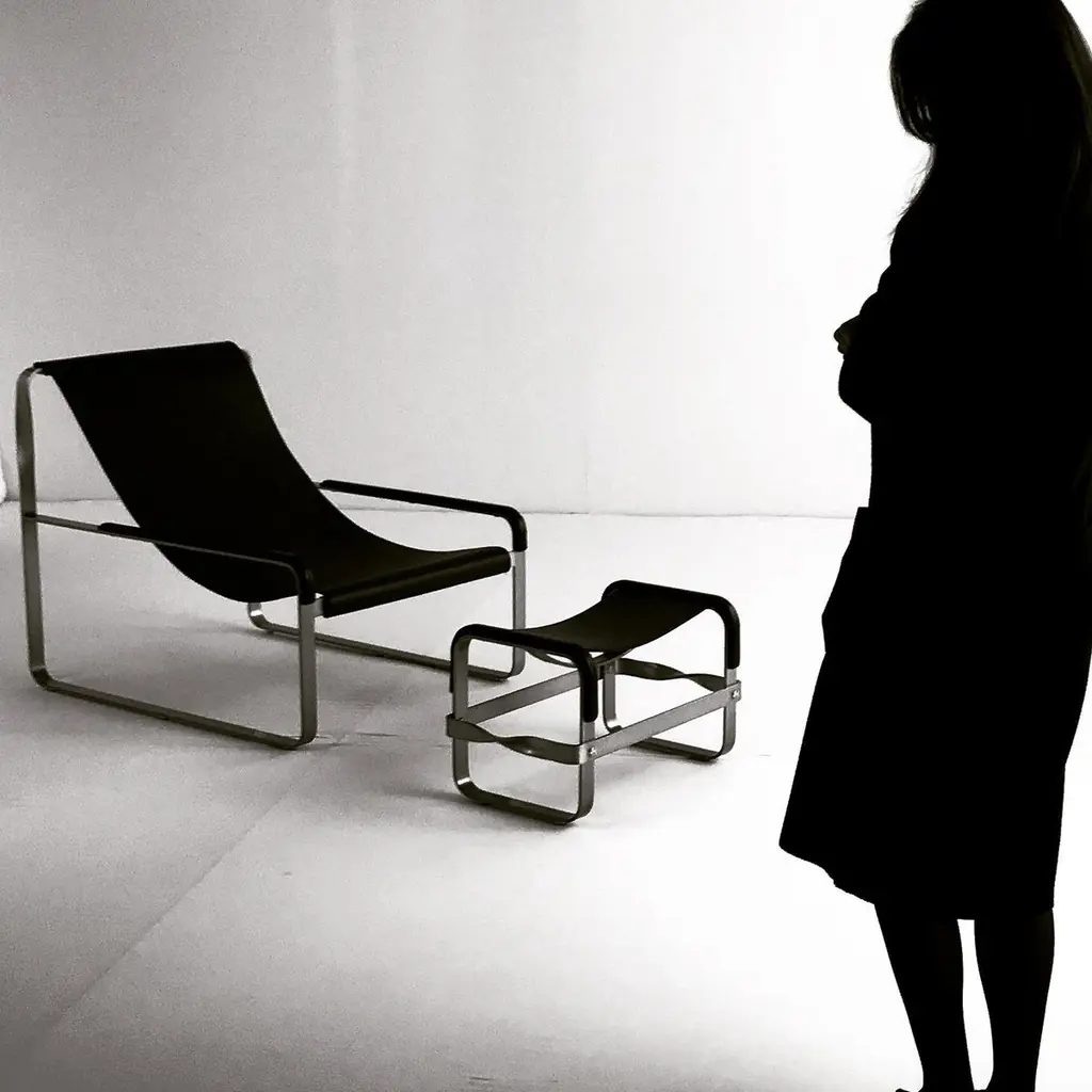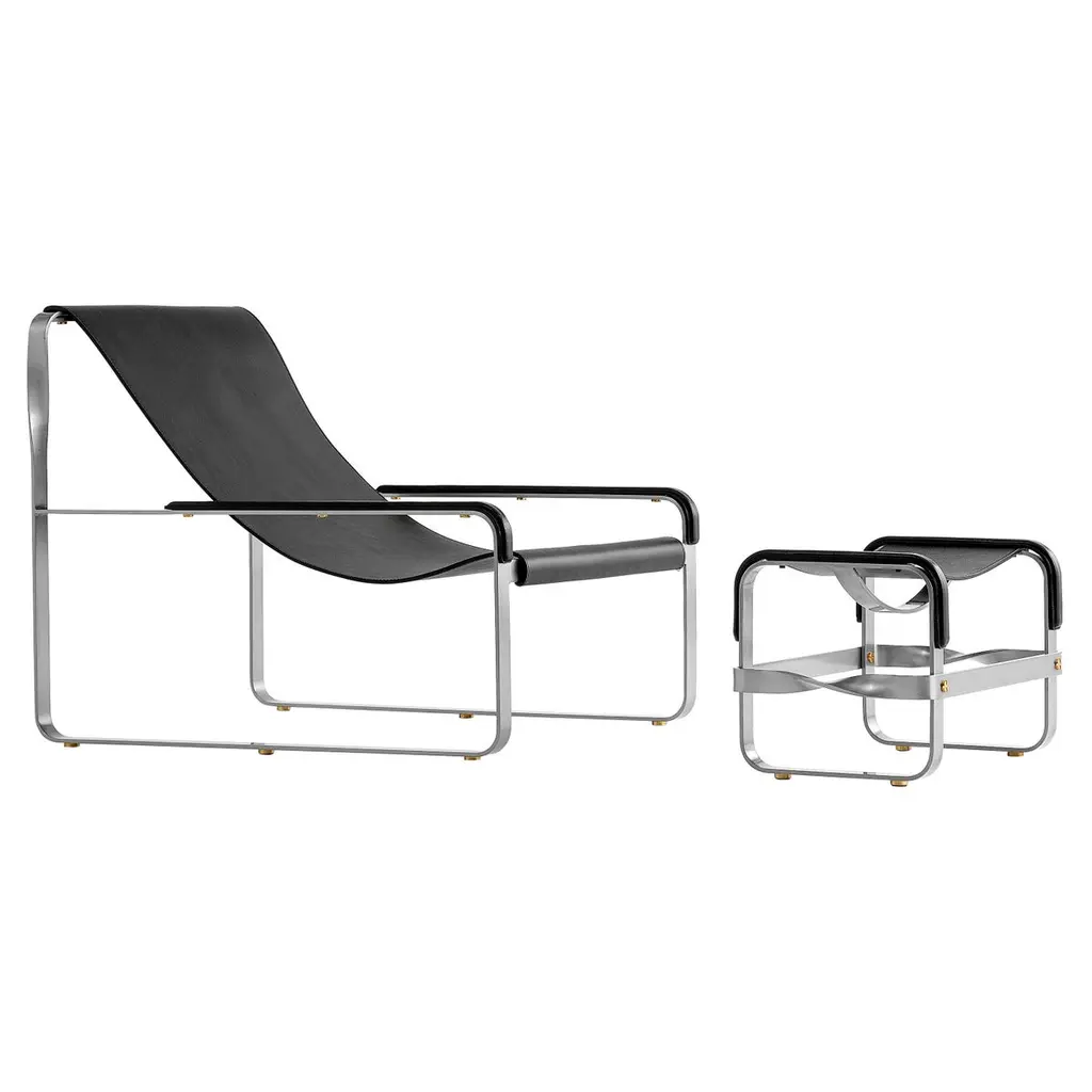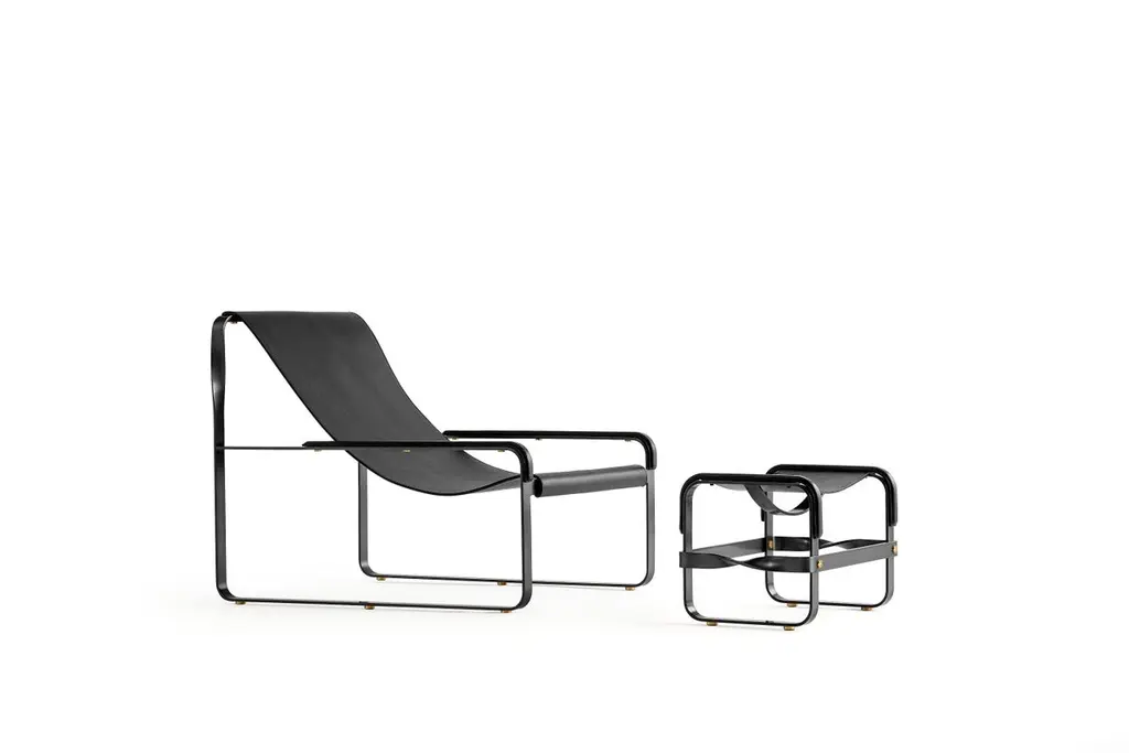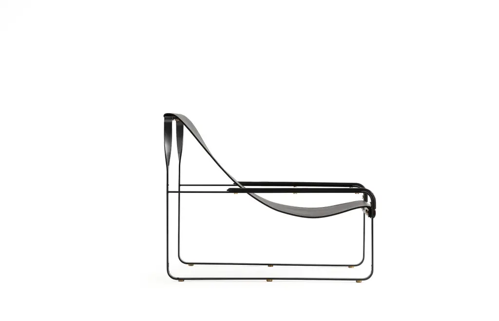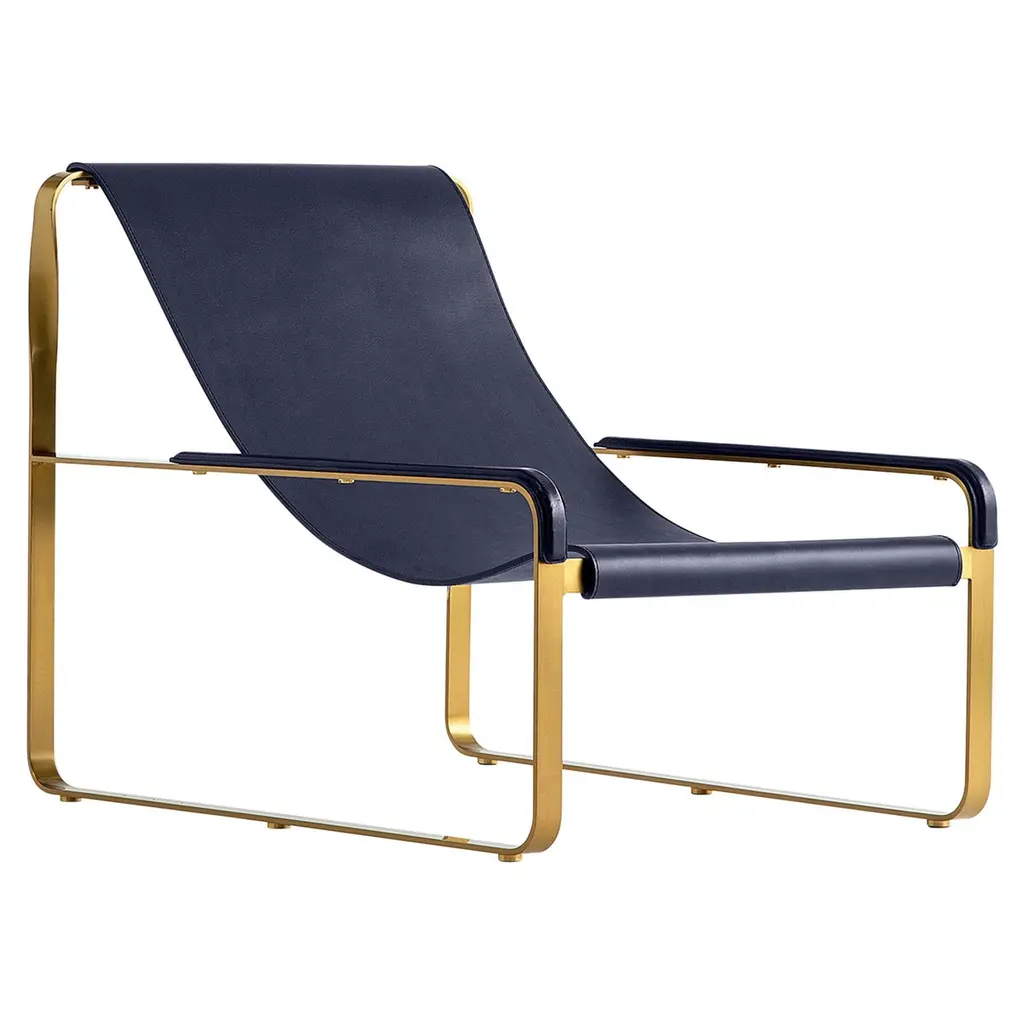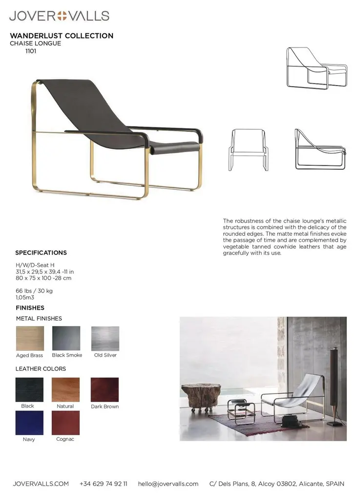 The Wanderlust contemporary chaise lounge belongs to a collection of minimalist and serene pieces where exclusivity and precision are shown in small details such as the hand-turned metal nuts and bolts that fix the leather surfaces, that go unnoticed at first sight.The robustness of the steel structure is combined with the delicacy of the rounded edges. The matte metal finishes evoke the passage of time and are complemented by vegetable tanned cowhide leathers that age gracefully with its use.The Wanderlust counter stool is designed and conceived as a tribute of Bauhaus tribute, the phrases "Less is more" and "God is in the detail" from the German American architect and industrial designer Mies van der Rohe, one of the pioneers of modernist architecture, define this collection.All pieces are done with cold bended steel rods, polished, nickel plated, colored by electrolysis, and lacquered. The process of polishing and lacquering the steel, goes through a manual and delicate chroming process, which gives its final and unique metal color finish. This precise technique gives a uniform metallic finish of minimum 50 microns over the entire Surface. Our metal finishing has successfully passed a corrosion resistance test in a salt spray chamber according to UNE-EN ISO 9227: 2017 and UNE-EN ISO 1456: 2010. Our signature screws are made with brass turning lathed, polished, and lacquered, these are the pieces that fix the saddle leather to the metal frame.Leathers are Spanish hides vegetable tanned. We use premium saddles in multiple colors to adjust to your taste and interior needs. This traditional vegetable dying and tanning method is an organic technique that relies on natural tannings from bark or plant tissues. The use of oils and natural fats give the leather a distinctive flexibility and texture, allowing it to be molded, retain its shape and age graciously.All skins are carefully selected from food industry sub-products, with a minimum thickness of 3.5 mm / 0,02 in, using the part of the animal's shoulder, which allows for larger pieces and uniformity, even though signature wrinkle from the animal’s neck may be recognizable. The vegetable tanning is a traditional and artisan treatment, which is respectful to the environment. Even with careful selection natural marks as a result of the contact with other animals, the age, origin and characteristics of the skin, or even the season in which the tanning takes place cannot be avoided. We still believe that these factors only add authenticity and uniqueness to every piece. Our leather parts are made with double saddles, always showing the top side of the hides that presents the better quality.Customization options.With the aim of creating customized pieces, clients can select from the various metal finishes, and leather colors to create pieces that complement their home décor. Leather colors available, black, navy, dark brown, cognac and natural tobacco, and steel polished finishing available, aged brass, black smoke and aged silver.Normally we use tone on tone threats for stitches, but client can select a contrast option, being possible to select any color to make a unique piece for the project it belongs. The finish on the edges of our leather components are sanded and hand painted. We have the option of select an alternative color if not tone on tone will be applied.Please consult in case you are interested on having a particular heat embossing stamp on the leather with your own branding.Our collections are made to full fill home spaces where to gather and enjoy great conversation with families and friends. Occasional furniture for exquisite homes, from cottages to exclusive resorts. Our product is understood as a sculptural piece of design, as an art object to be displayed at different house spaces as library, bar, living, foyer, bedroom, powder, meeting, grand or great room.The different finishes options make the furniture perfect combinations on diverse styles, from rustic mountain home, a small cottage, a ski lodge retreat, or industrial a minimalist look.