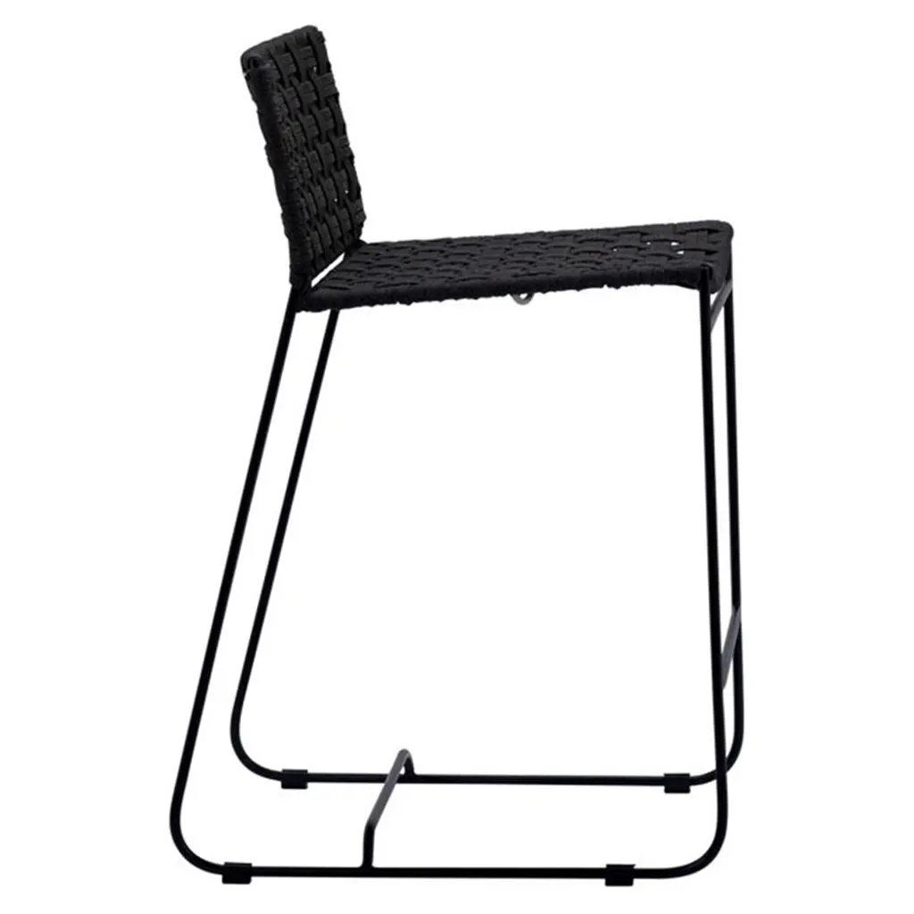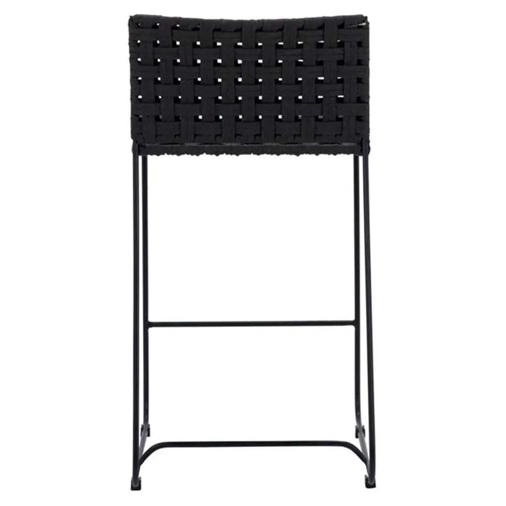 Clint Coastal Beach Black Woven Rope Seat Black Iron Frame Outdoor Counter Stool