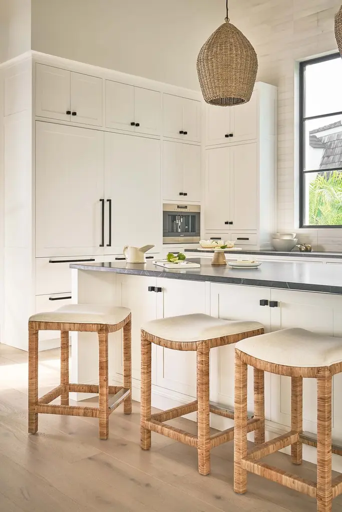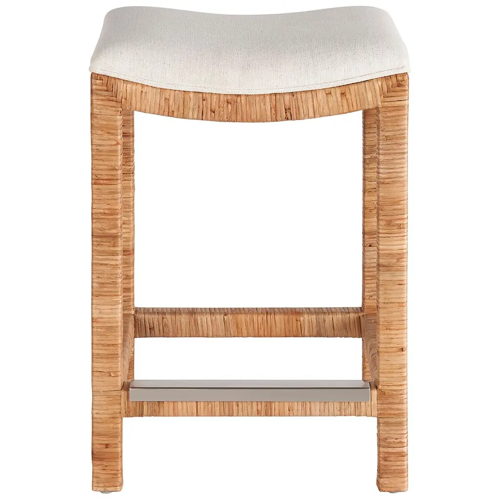 The Coastal Living Key West counter stool epitomizes beachy-cool, transforming your space into a tranquil haven with its split rattan body adding natural texture. The stool is upholstered in stain-resistant Crypton Fabric in Nomad Snow. Standing at 25 inches, the stool is perfect for casual dining, and adjustable levelers ensure balance on any surface. Beyond furniture, this set is an experience, inviting you to unwind and embrace laid-back coastal living.