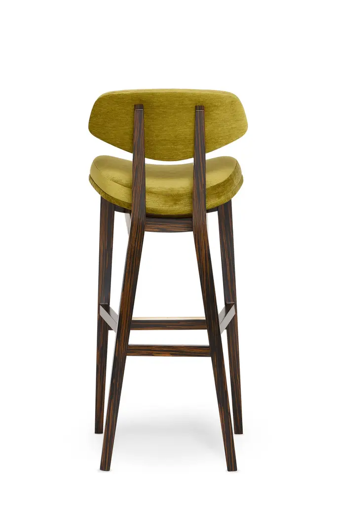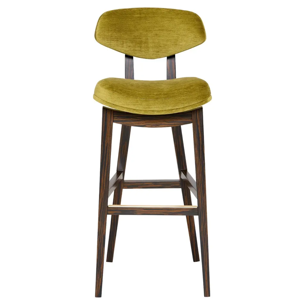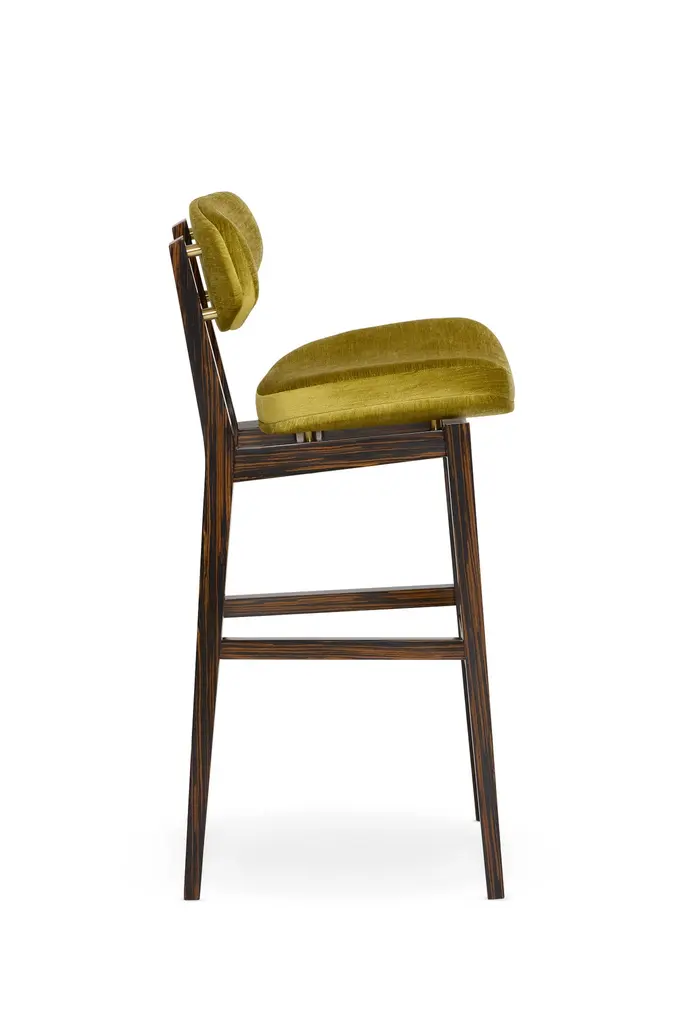 Coleman Counter Stool by MunnaDimensions: D 54 x W 44 x H 95 cm. SH: 70 cm.Materials: Solid wood, foam, brass, and upholstery.Finish: Upholstery: Vivid Chenille, ref. Moss, VIC13. Legs: Ebony wood veneer is finished with Matt varnish. Metal Details: Brushed Brass.Available in all Munna fabrics except Wild Silk. Available in client’s ownmaterial. Legs are available in Rosewood, Ebony, or Walnut veneer, Wengé stain, and lacquer in all RAL colors, in matt or gloss. The metal details are available in Brass, Nickel, or Copper in polished or brushed. Handmade in Porto. Please contact us.Established in Porto in 2008, Munna is a furniture design brand renowned for creating handmade upholstery with unmatched craftsmanship, seamlessly blending noble materials and timeless design, for both commercial and residential projects.Made by hand in Porto, Munna’s pieces honor the profound heritage of craftsmanship, while drawing inspiration from history’s most influential artistic periods. Munna’s pieces are made of the finest fabrics such as cotton velvet, twill, leather, and silk; the finest wood veneers, such as ebony, walnut, and rosewood; sumptuous gold, silver, and copper leaves, metal details in brass, nickel, and copper, and superior lacquers.