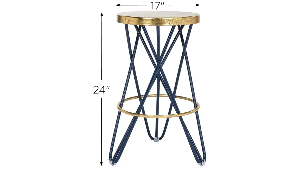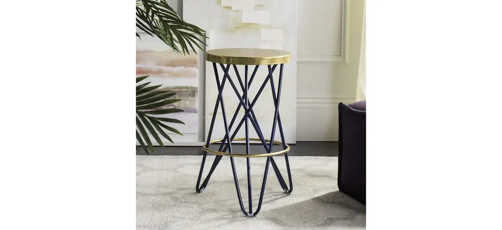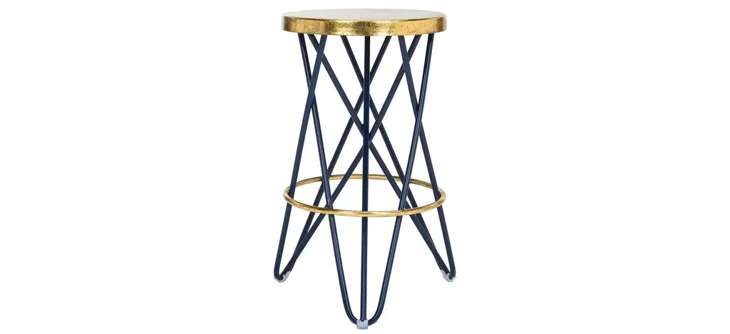 This contemporary Collin counter stool takes any urban oasis to new heights. Inspired by the posh interiors of Barcelona's hottest culinary destination, its stunning retro glam style creates instant drama with its gold leaf and navy finish and sleek hairpin legs.