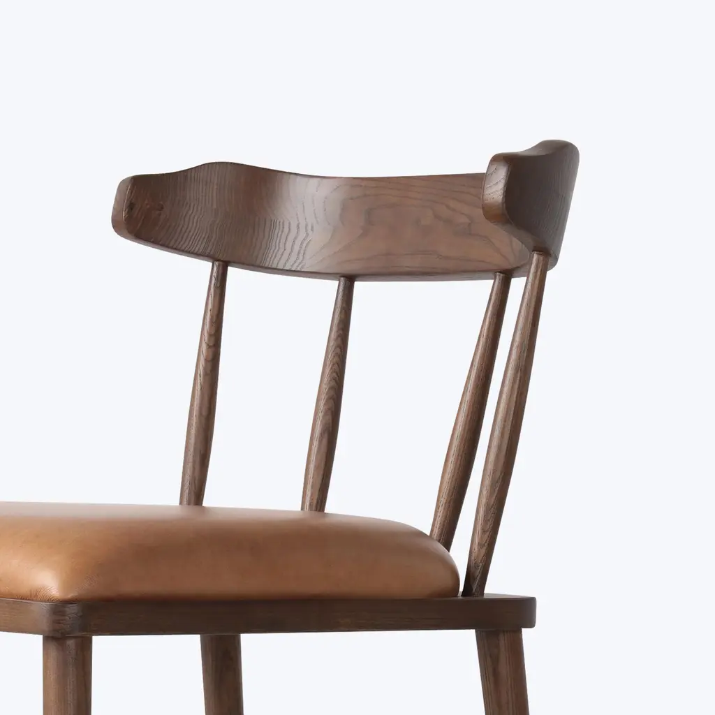 Discover the Astrud Leather Dining Chair by Four Hands. Designed for an art deco feel, this elegant dining chair pairs sculpted form with slim iron-tube framing finished in a brushed slate. Crafted in faux leather and available in Sierra Butterscotch and Sonoma Black upholstery.