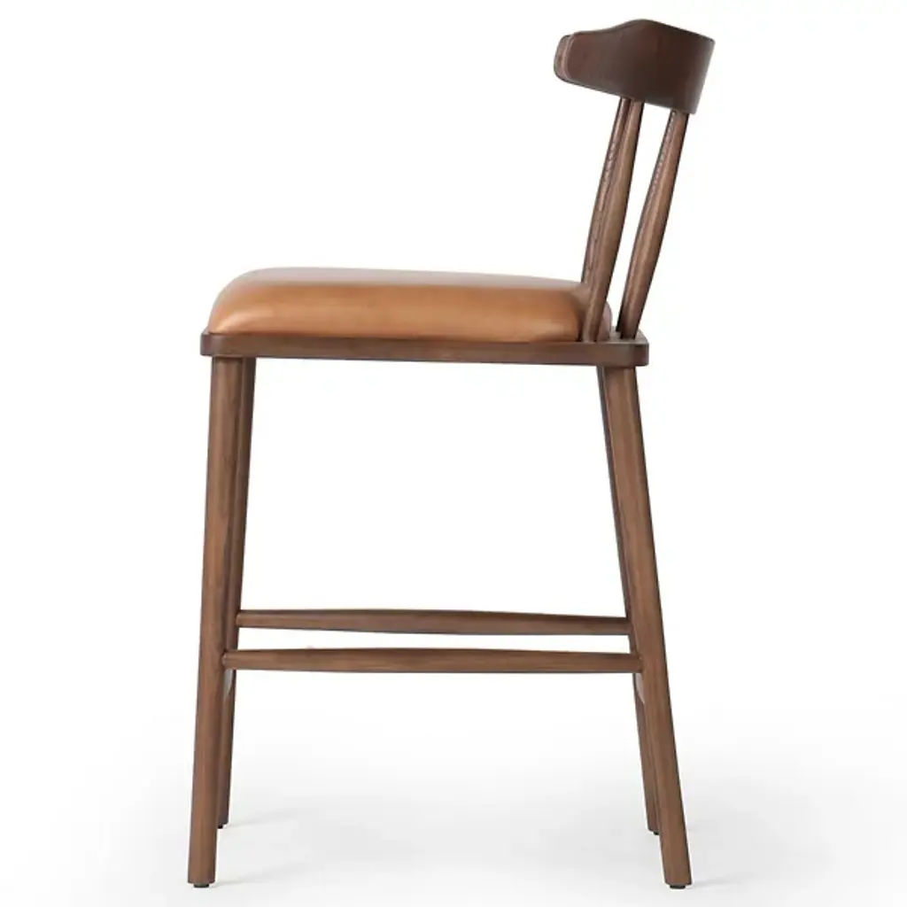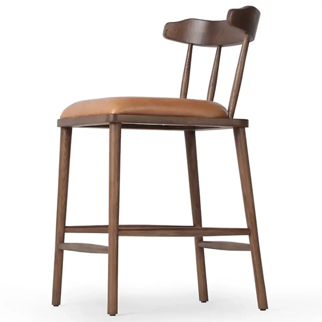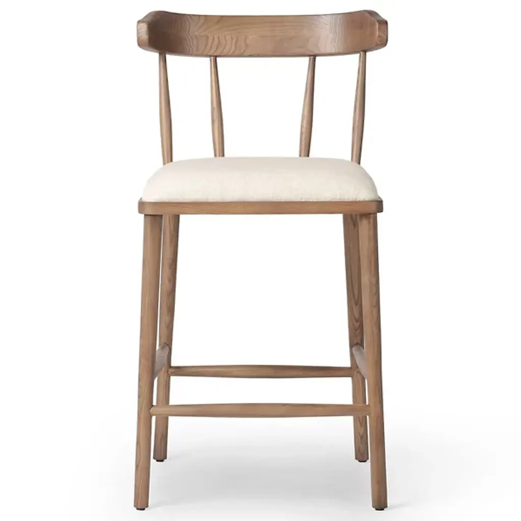 The Colter Counter Stool from Four Hands restructures classic spindle seating. The solid ash framework holds a carefully spaced array of vertical supports, while a padded seat combines linen, cotton, and polyester. The foam and fiber batting cushioning maintains its shape through daily use. This performance fabric stands up to spills and heavy use - a quick steam refreshes its appearance. The seat height works perfectly for both kitchen islands and home bars, while the uncomplicated design makes it a natural fit for any dining space.
