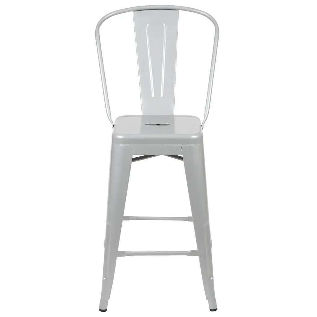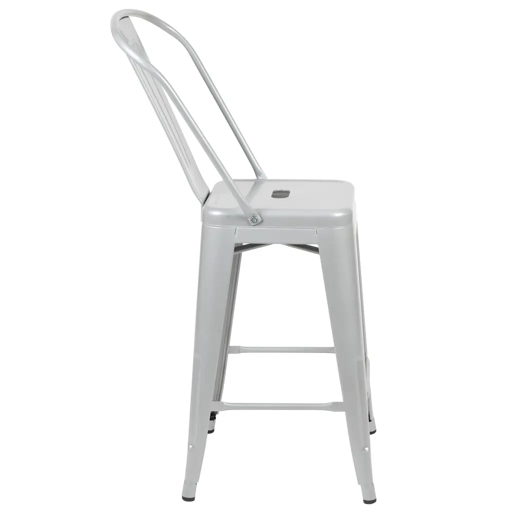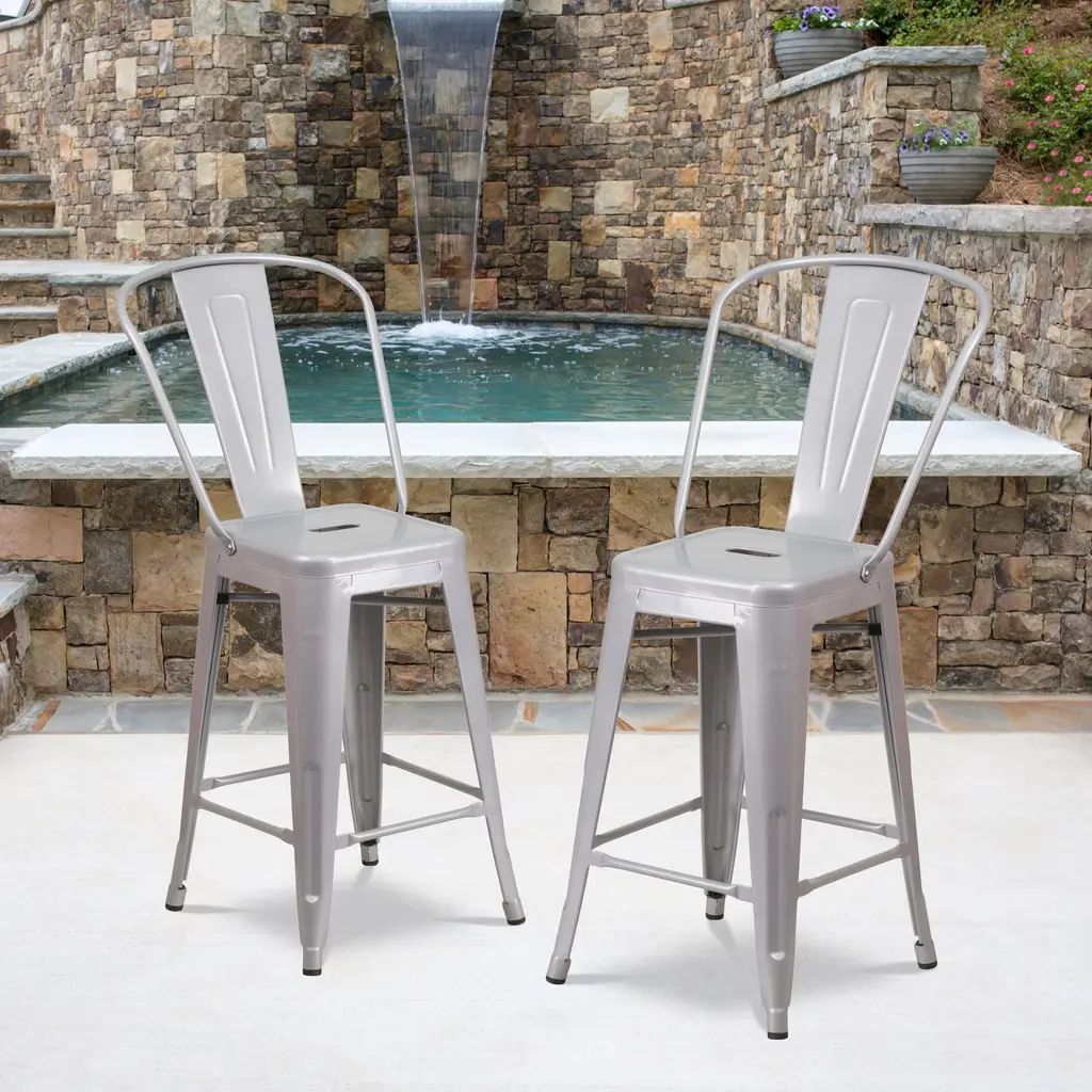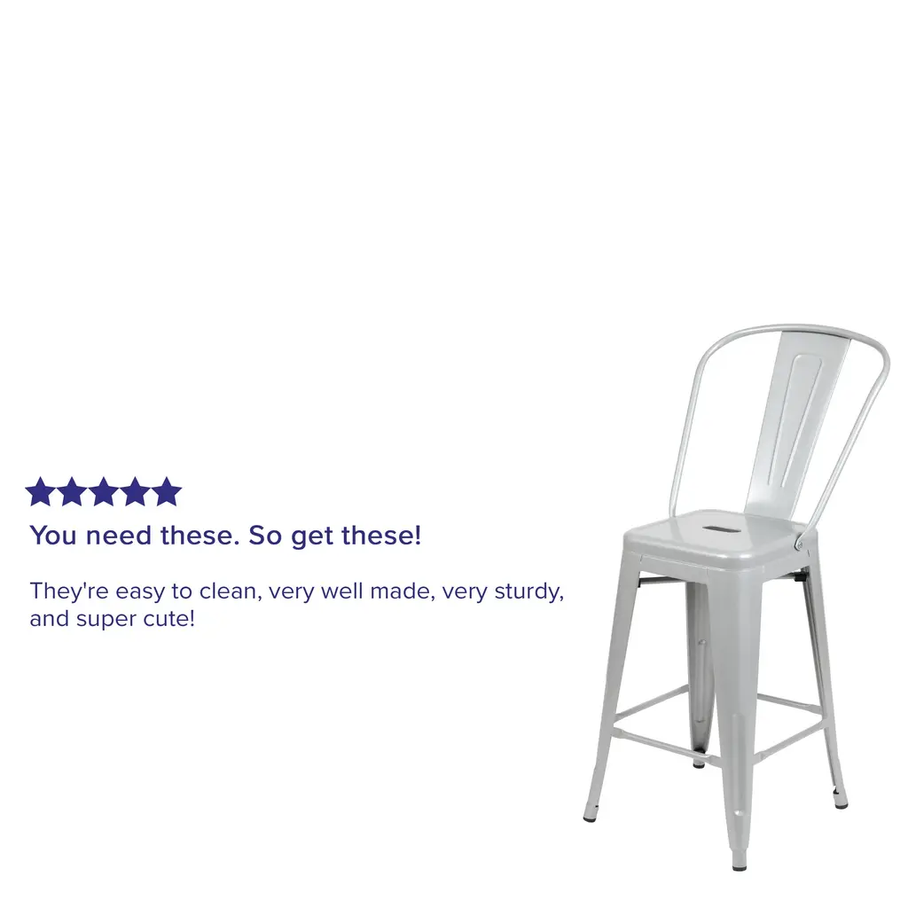 Commercial Grade 24" High Metal Indoor-Outdoor Counter Height Stool With Back