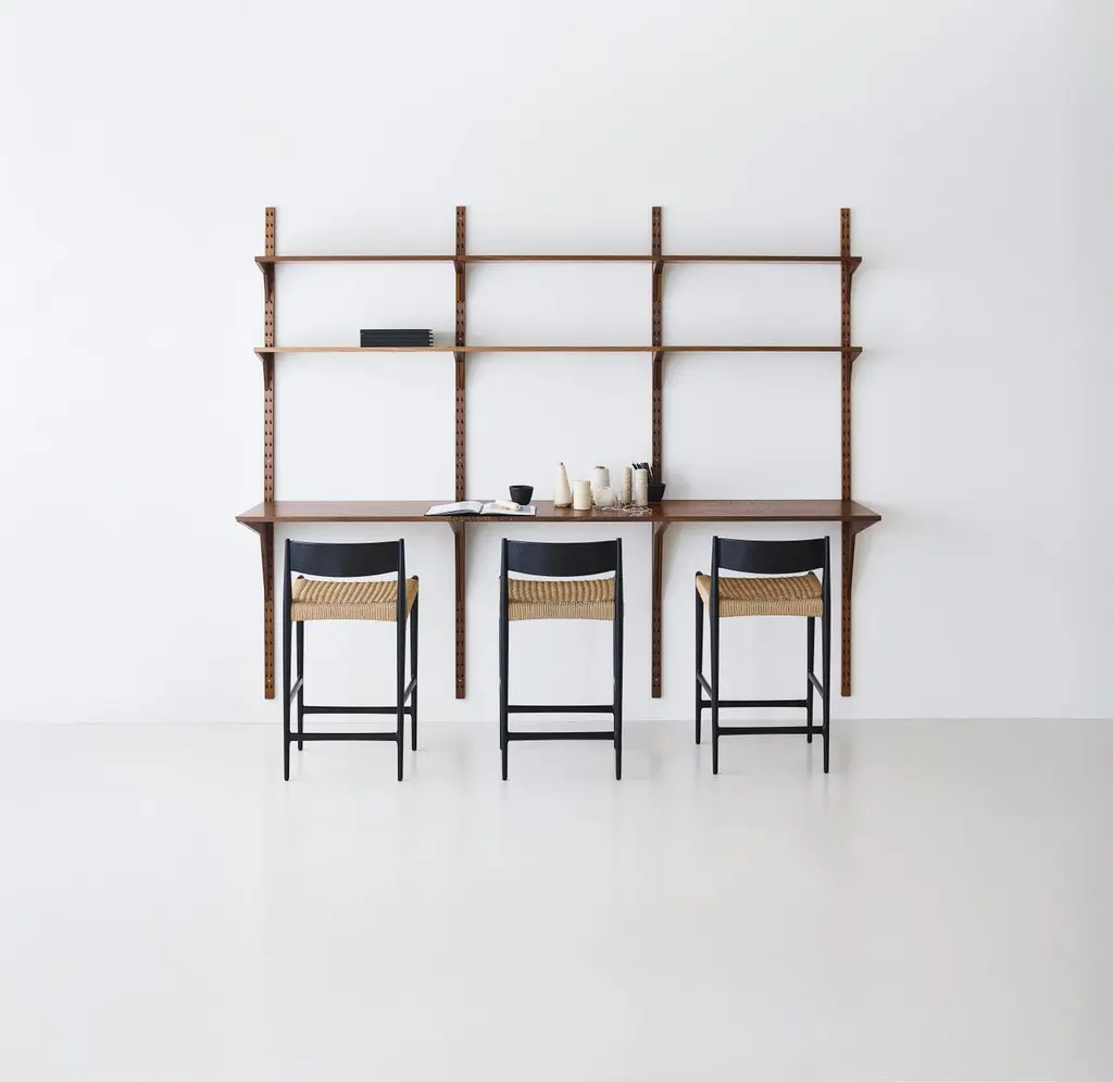 Contemporary Counter Stool PIA by Poul Cadovius for Dk3Materials: Solid oak frame, paper cordel seatDimensions: B.47 x D.51 x H.85 cmSeating: B.47 x D.42 x H.65 cmWood:– Oak– Smoked oak– Black lacquered oak– WalnutPaper cordel:– Natural– BlackSize:- Counter Stool: H. 85 cm- Bar Stool: H. 100 cm--Each stool features thin, conical-shaped solid wood legs with a hand-sanded rounding at the top and finger-joined front legs. The seat is made of hand-woven paper cord. The moulded backrest and the footrest ensure solid support and comfort when seated.Whether at a kitchen counter or at a bar, the Pia Counter Stool and Pia Bar Stool embody both comfort, refinement and timeless Danish design - just as Poul Cadovius envisioned over half a century ago.