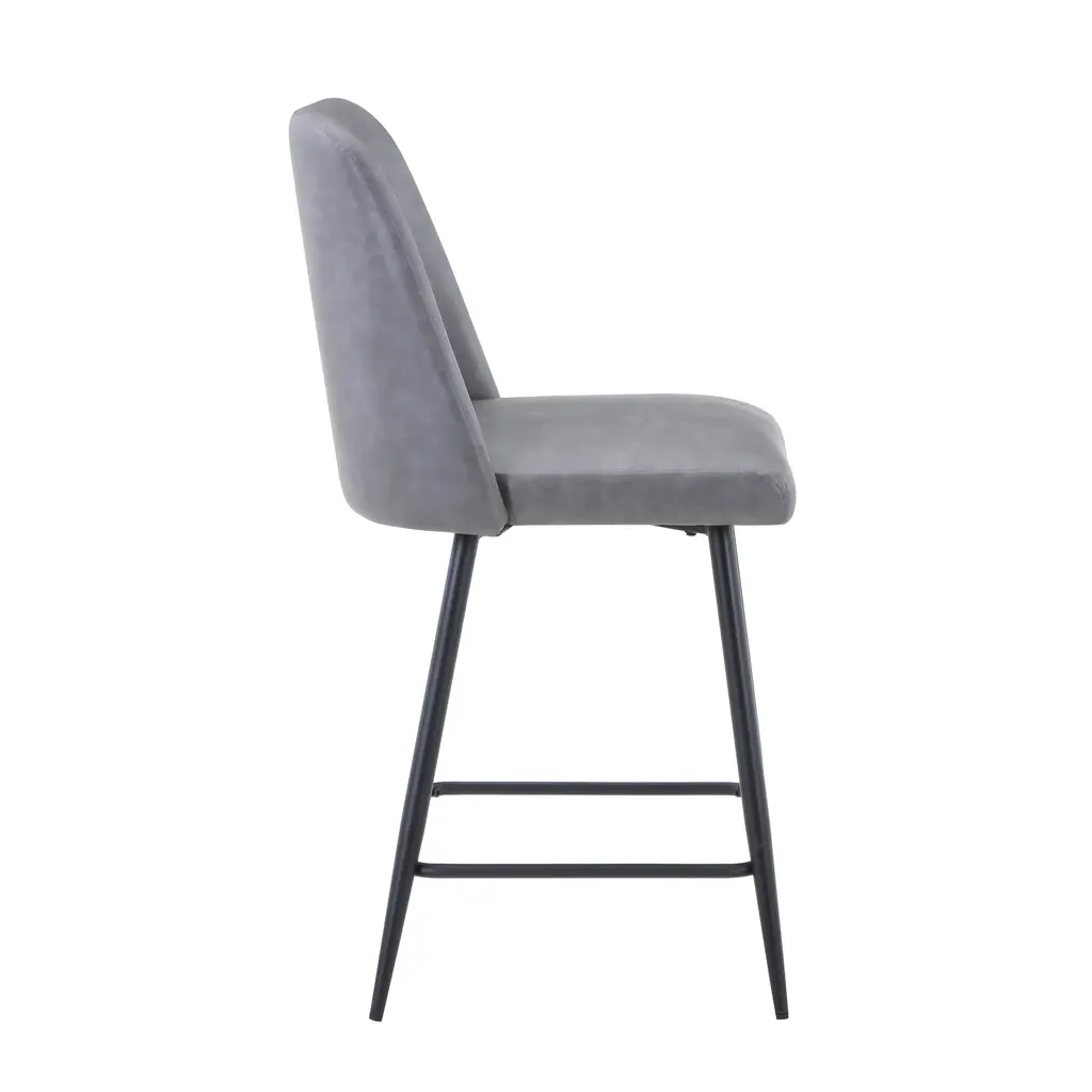 This contemporary counter stool is designed to bring a touch of modern style to your kitchen or dining area. The sturdy metal frame provides a solid foundation, while the medium wood tone accents add a warm, inviting touch. The seat and back are upholstered in a sleek grey faux leather, creating a cohesive and sophisticated look.The upholstered seat and full back provide comfort and support, making it perfect for lingering over a meal or conversation. The seat height is 25 inches, making it ideal for counter-height tables and islands. Plus, the easy-to-clean faux leather upholstery can be wiped down with water-based cleaners, making maintenance a breeze.With its sleek design and durable construction, this counter stool is a great choice for anyone looking to add a touch of contemporary style to their home. The solid, grey upholstery and metal frame create a versatile look that will complement a variety of decor styles, from modern to traditional.