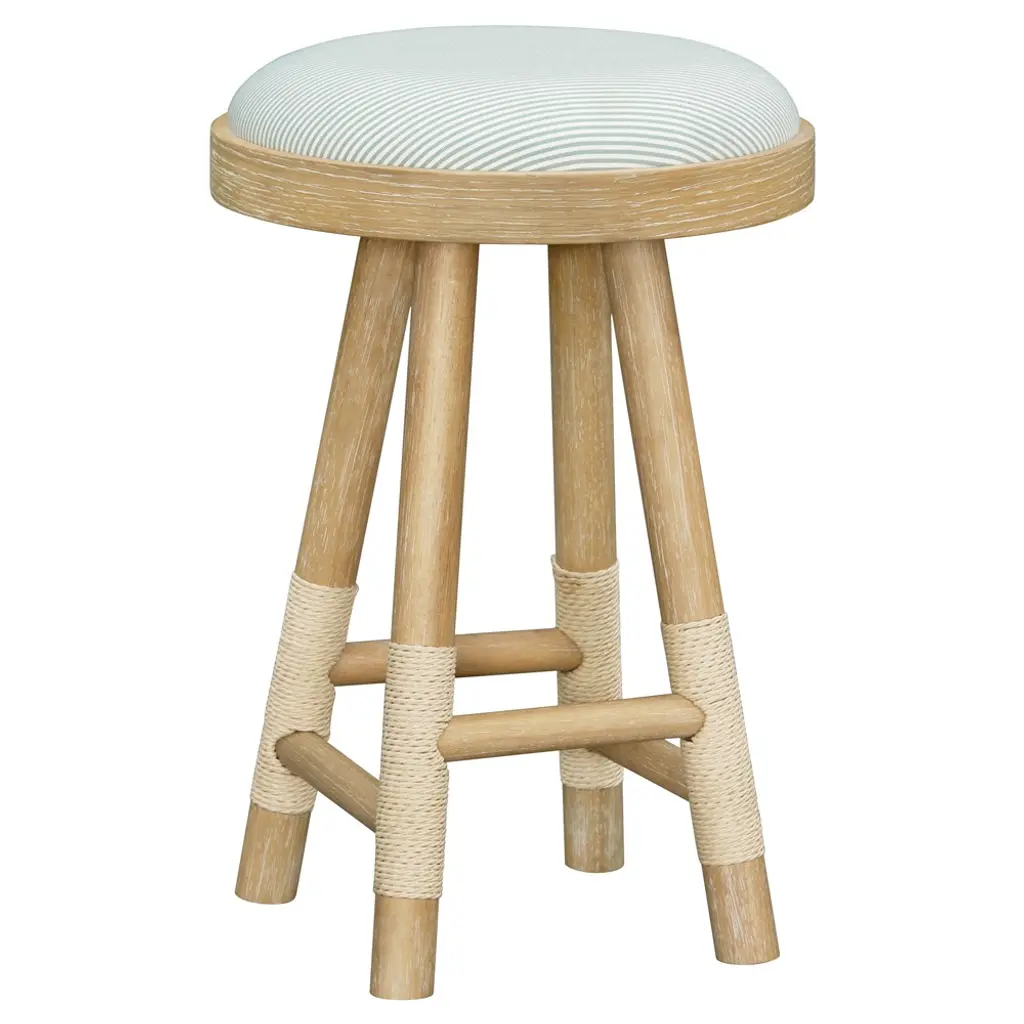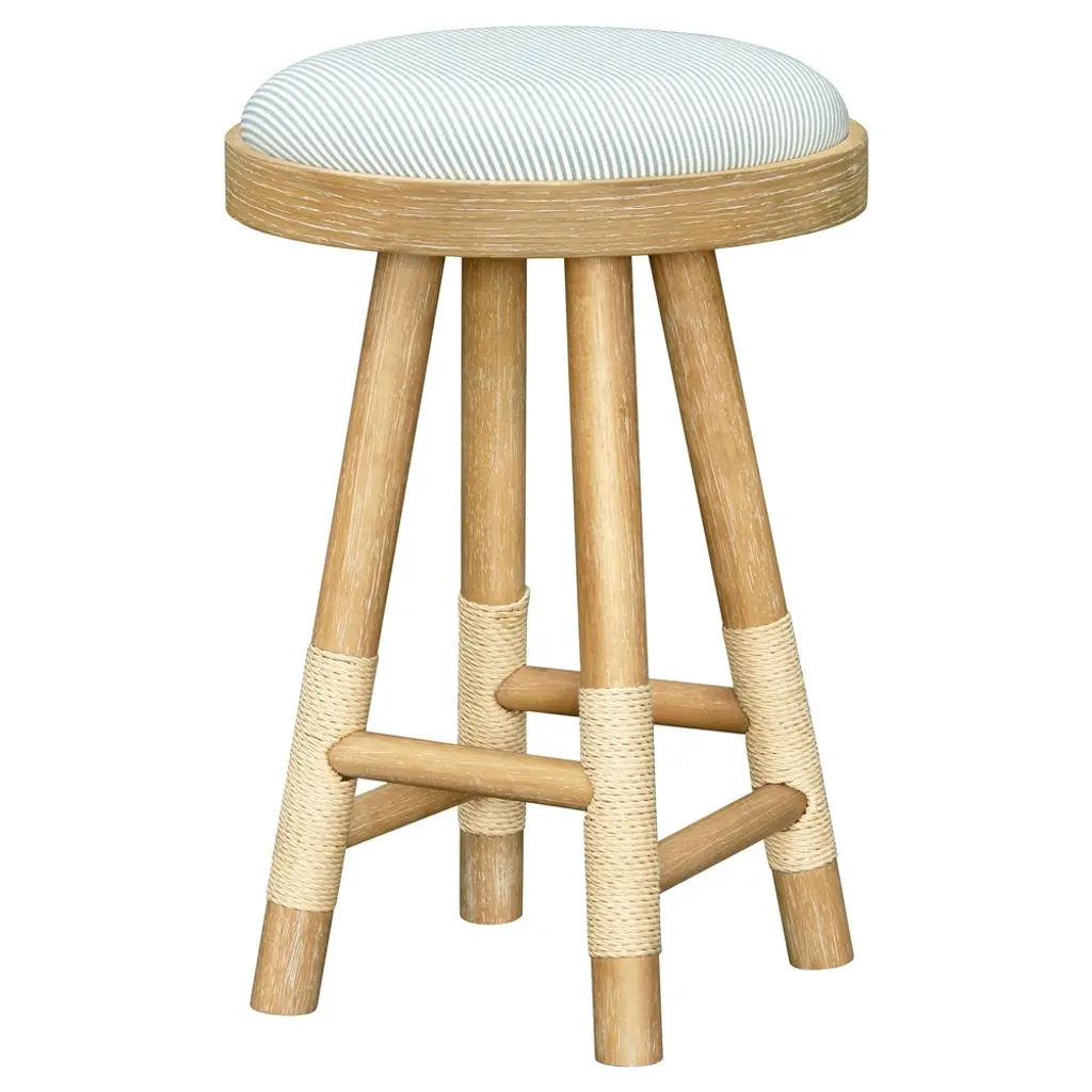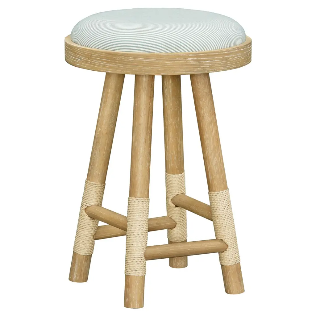 Cora Coastal Beach Blue Striped Brown Wood Counter Stool