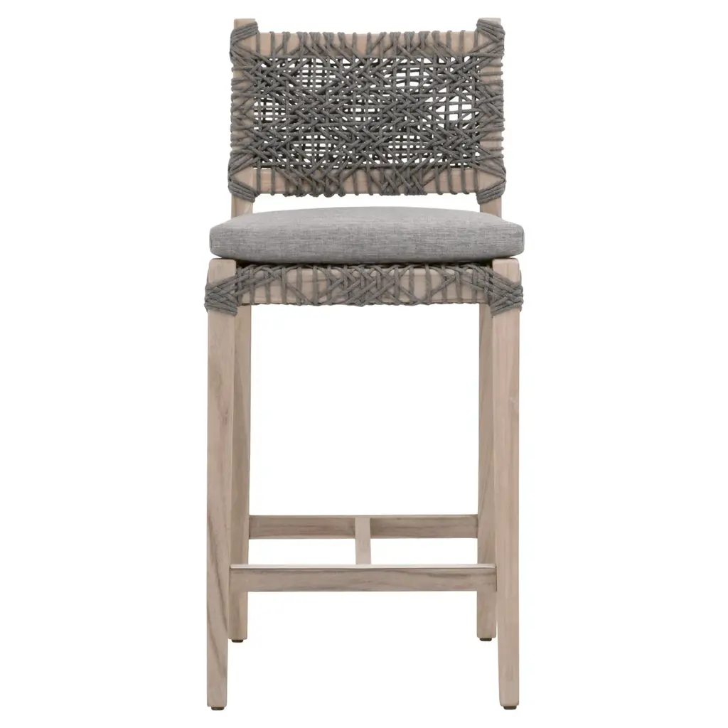 Costa Outdoor Counter Stool Dove Flat Rope, Performance Dove, Gray Teak
