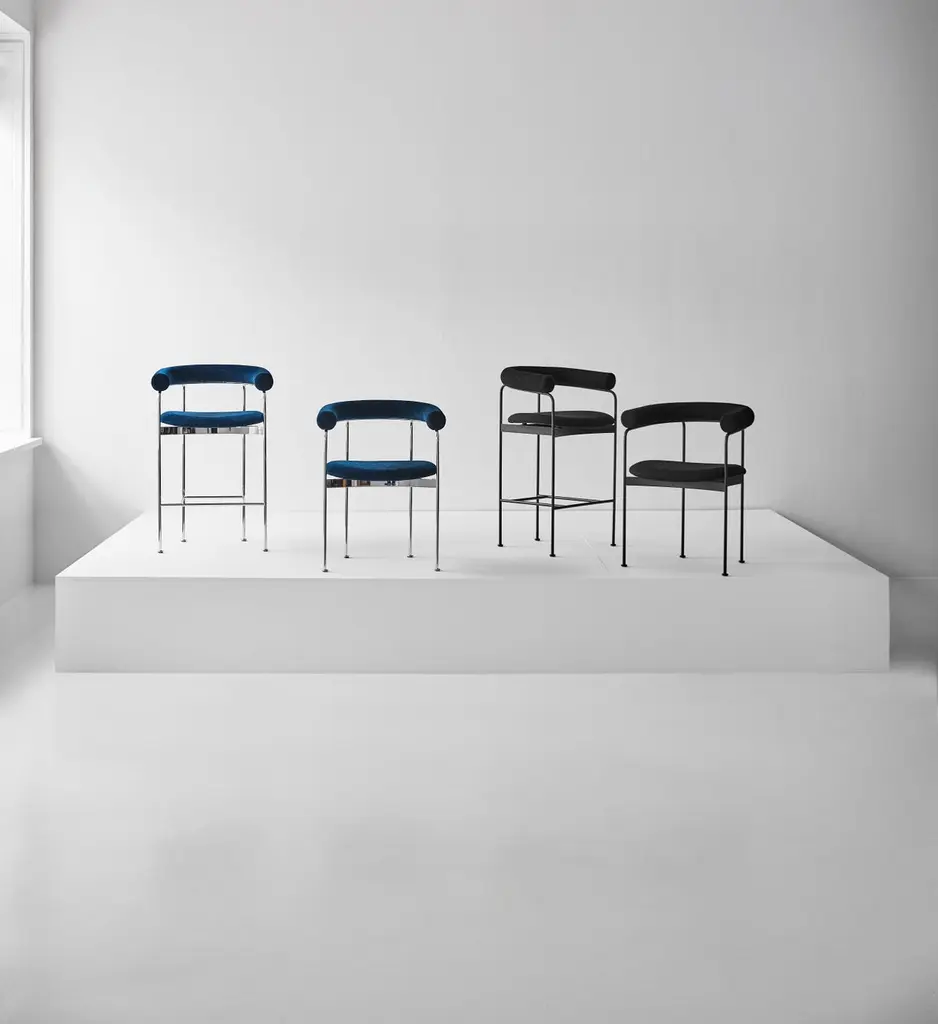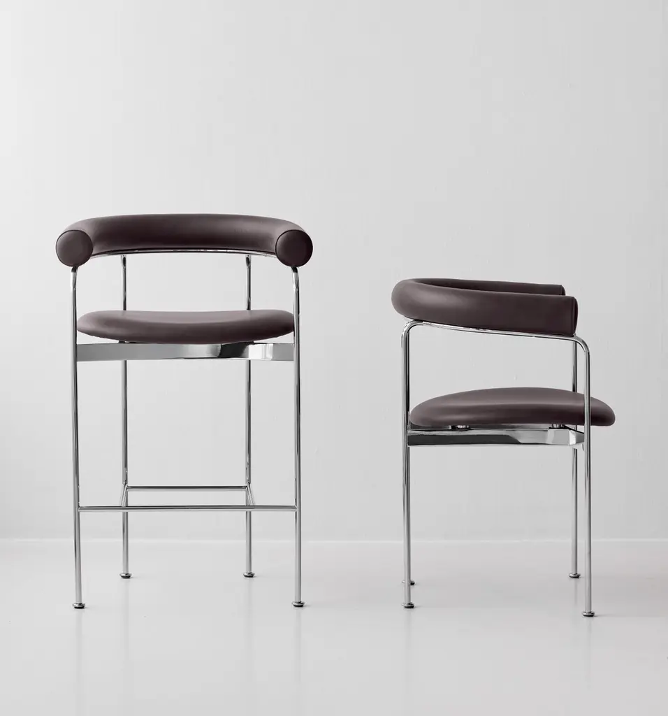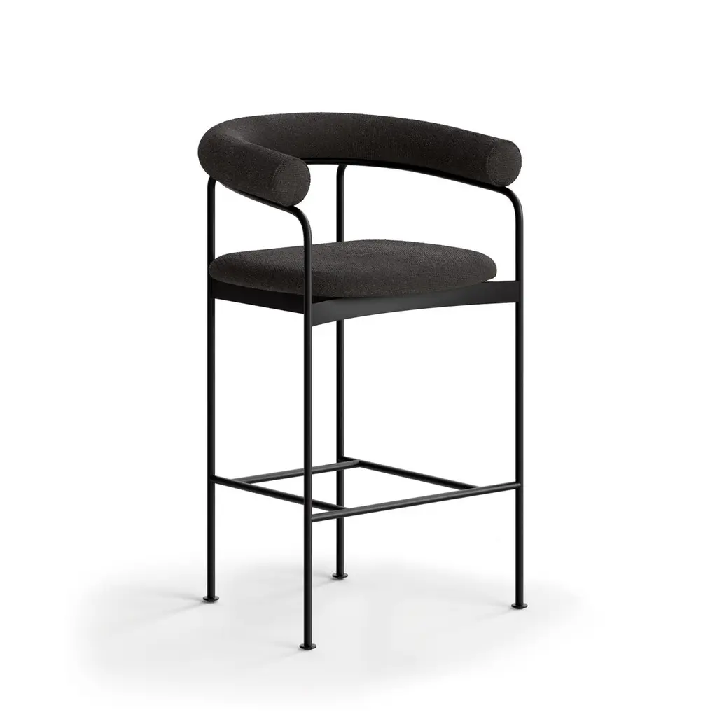 BAIA Counter StoolSteel frame, wooden or upholstered backrestModel shown on main image:Frame: Black Backrest: FabricFabric: Balmoral 91Dimensions:H. 89 x 58 x 50 cm / Seat height: 66 cmH. 35.04 x 22.83 x 19.69 in / Seat height: 25.98 inFrame: – Chrome– Black– Red (RAL 3003 )– Green (RAL 6009)– Black (RAL 9005)Wood:– Oak– Smoked oak– Black lacquered oak– WalnutFabrics:– Balmoral– Pelle leather– Hallingdal – SteelCiutTrio – Alpaca MohairModel:– Baia Chair– Baia Counter Stool-------As a tribute to Danish furniture design, the Japanese designer Kensaku Oshiro has created a chair, which, in the most distinguished way, unites Danish and Japanese design aesthetics. The inspiration from a bay is embodied in the smoothly curved C form of the wooden backrest, which lies tangentially on the top of the elegant steel frame and gives a warm and soft contrast to the steel and leather components.The construction of the steel frame has a fine balance between the thin vertical lines of the tubes and the distinct horizontal elements. Each leg has a small round finish, and the width between the front legs is wider than between the back legs, which brings symmetry to the chair and gives it a harmonious and characteristic look.The C-shaped backrest is available either in an upholstered version or in solid wood. The solid wood backrest is made by using a special steam-bending technology and is subsequently hand-sanded. The upholstered backrest is hand-sewn and comes in a wide range of fabric and leather options. The soft, upholstered seat provides excellent seating comfort and is available in both leather and fabric.