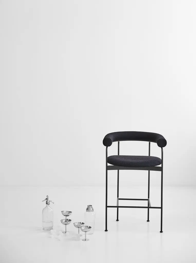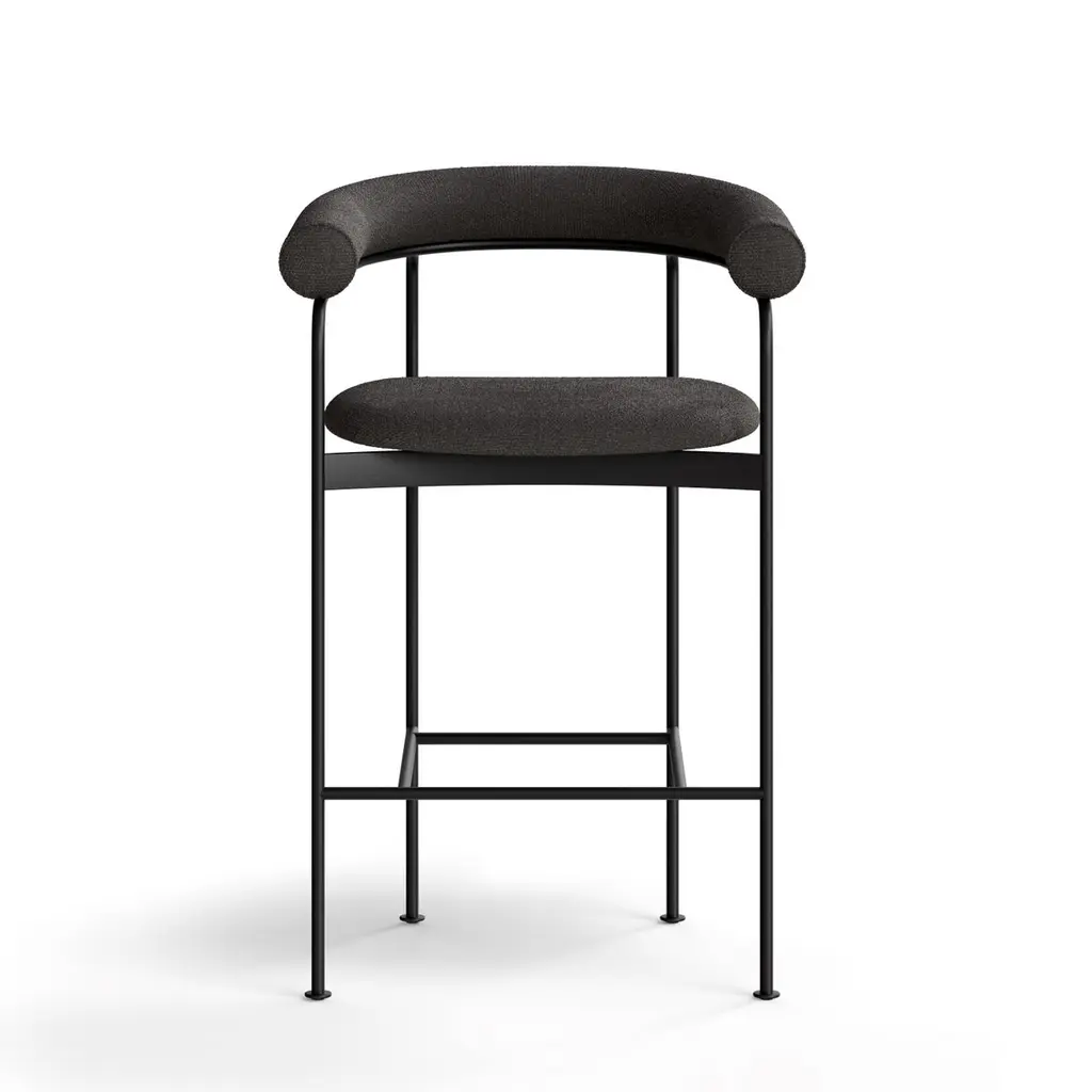 Counter Stool 'Baia' By Kensaku Oshiro X Dk3, Black Frame, Grey Fabric