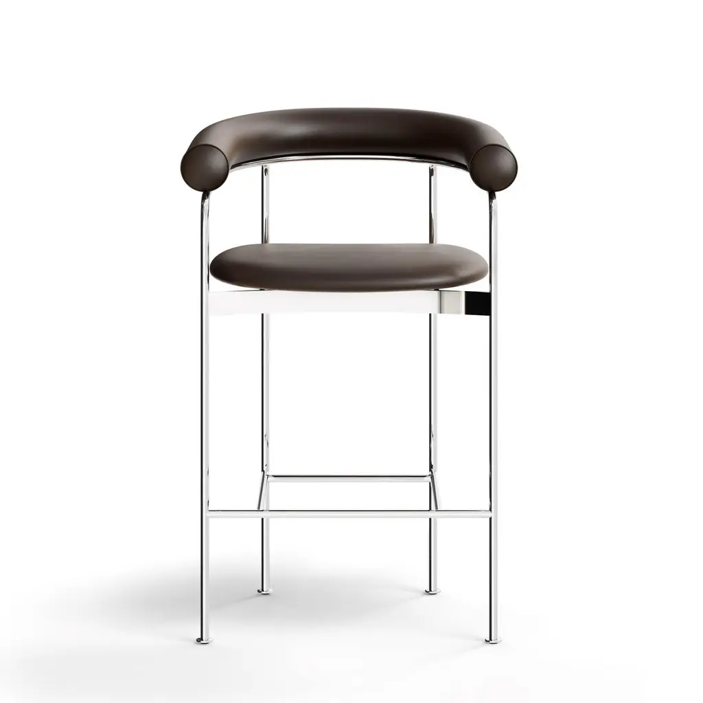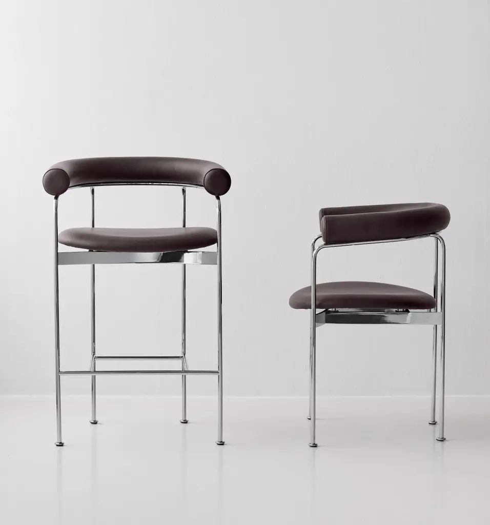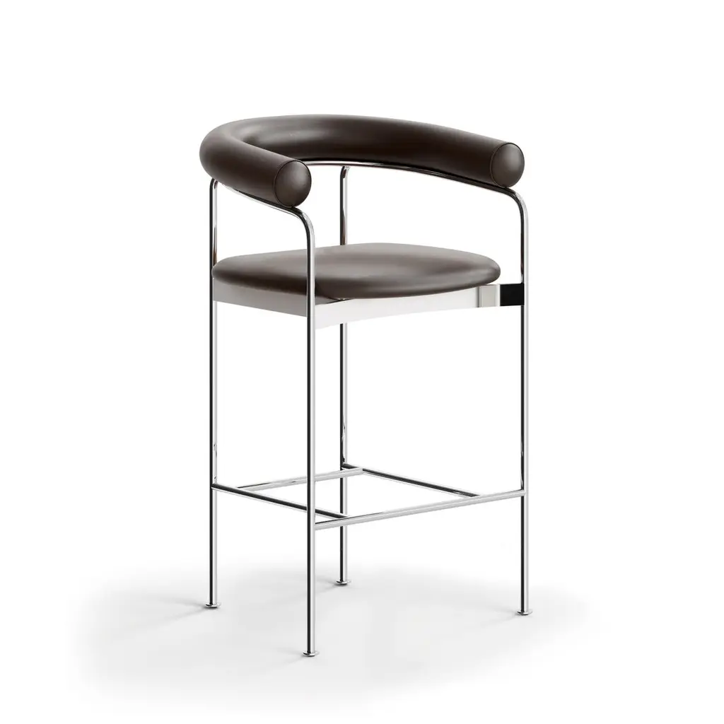 Counter Stool 'Baia' By Kensaku Oshiro X Dk3, Chrome Frame, Brown Leather