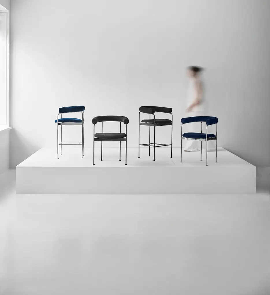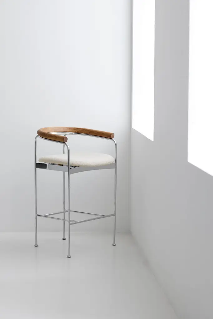 BAIA Counter StoolSteel frame, wooden or upholstered backrestModel shown on main image:Frame: ChromeBackrest: LeatherFabric: Brown Pelle LeatherDimensions:H. 89 x 58 x 50 cm / Seat height: 66 cmH. 35.04 x 22.83 x 19.69 in / Seat height: 25.98 inFrame: – Chrome– Black– Red (RAL 3003 )– Green (RAL 6009)– Black (RAL 9005)Wood:– Oak– Smoked oak– Black lacquered oak– WalnutFabrics:– Balmoral– Pelle leather– Hallingdal – SteelCiutTrio – Alpaca MohairModel:– Baia Chair– Baia Counter Stool-------As a tribute to Danish furniture design, the Japanese designer Kensaku Oshiro has created a chair, which, in the most distinguished way, unites Danish and Japanese design aesthetics. The inspiration from a bay is embodied in the smoothly curved C form of the wooden backrest, which lies tangentially on the top of the elegant steel frame and gives a warm and soft contrast to the steel and leather components.The construction of the steel frame has a fine balance between the thin vertical lines of the tubes and the distinct horizontal elements. Each leg has a small round finish, and the width between the front legs is wider than between the back legs, which brings symmetry to the chair and gives it a harmonious and characteristic look.The C-shaped backrest is available either in an upholstered version or in solid wood. The solid wood backrest is made by using a special steam-bending technology and is subsequently hand-sanded. The upholstered backrest is hand-sewn and comes in a wide range of fabric and leather options. The soft, upholstered seat provides excellent seating comfort and is available in both leather and fabric.