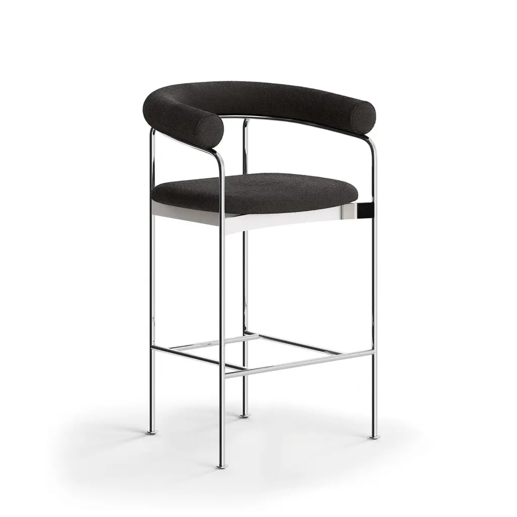 Counter Stool 'Baia' By Kensaku Oshiro X Dk3, Chrome Frame, Grey Fabric