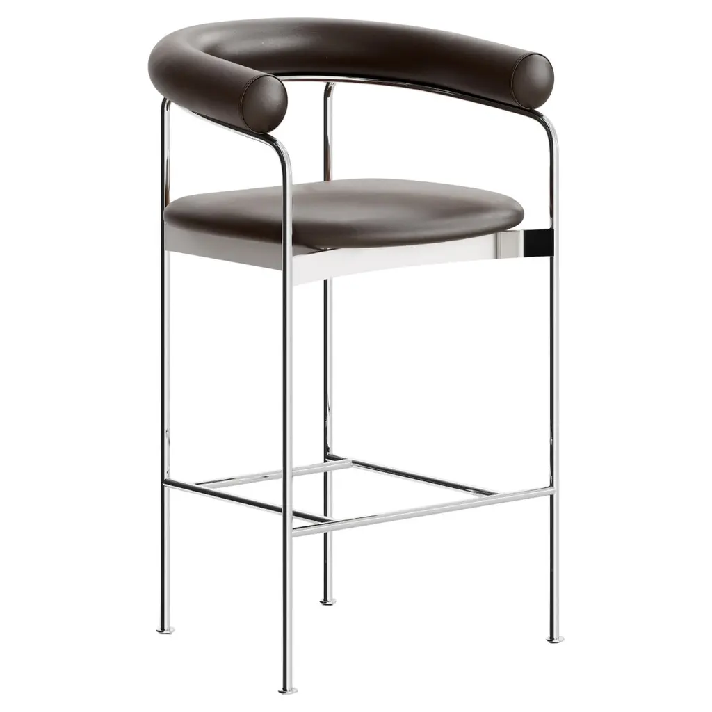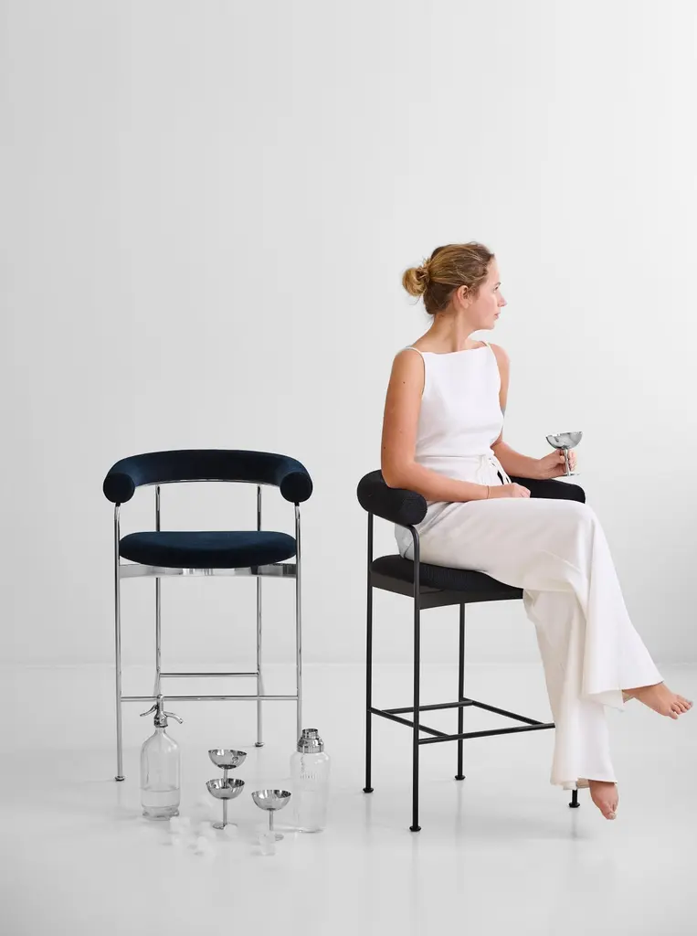 BAIA Counter StoolSteel frame, wooden or upholstered backrestModel shown on main image:Frame: ChromeBackrest: FabricFabric: Balmoral 91Dimensions:H. 89 x 58 x 50 cm / Seat height: 66 cmH. 35.04 x 22.83 x 19.69 in / Seat height: 25.98 inFrame: – Chrome– Black– Red (RAL 3003 )– Green (RAL 6009)– Black (RAL 9005)Wood:– Oak– Smoked oak– Black lacquered oak– WalnutFabrics:– Balmoral– Pelle leather– Hallingdal – SteelCiutTrio – Alpaca MohairModel:– Baia Chair– Baia Counter Stool-------As a tribute to Danish furniture design, the Japanese designer Kensaku Oshiro has created a chair, which, in the most distinguished way, unites Danish and Japanese design aesthetics. The inspiration from a bay is embodied in the smoothly curved C form of the wooden backrest, which lies tangentially on the top of the elegant steel frame and gives a warm and soft contrast to the steel and leather components.The construction of the steel frame has a fine balance between the thin vertical lines of the tubes and the distinct horizontal elements. Each leg has a small round finish, and the width between the front legs is wider than between the back legs, which brings symmetry to the chair and gives it a harmonious and characteristic look.The C-shaped backrest is available either in an upholstered version or in solid wood. The solid wood backrest is made by using a special steam-bending technology and is subsequently hand-sanded. The upholstered backrest is hand-sewn and comes in a wide range of fabric and leather options. The soft, upholstered seat provides excellent seating comfort and is available in both leather and fabric.