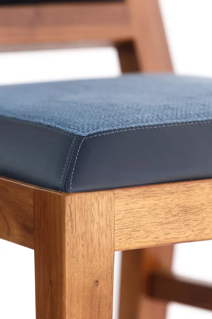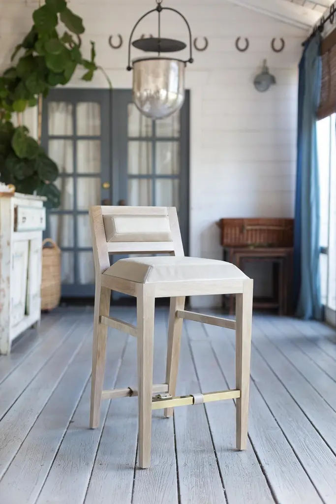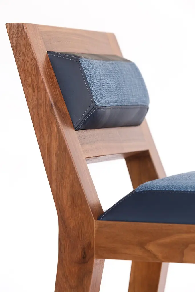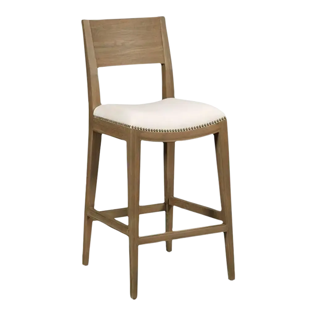 Counter Stool In Bleached Solid Walnut With Leather And Fabric Upholstered Seat