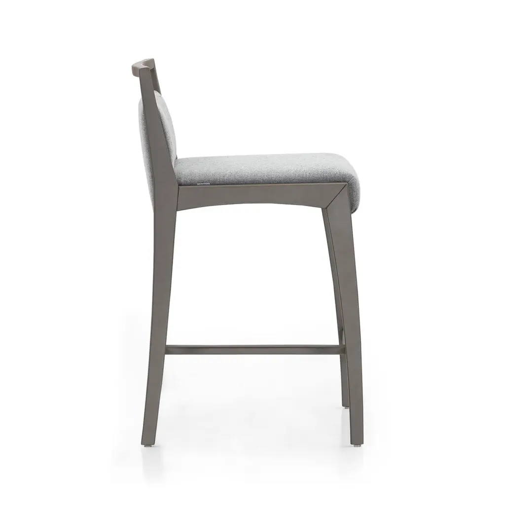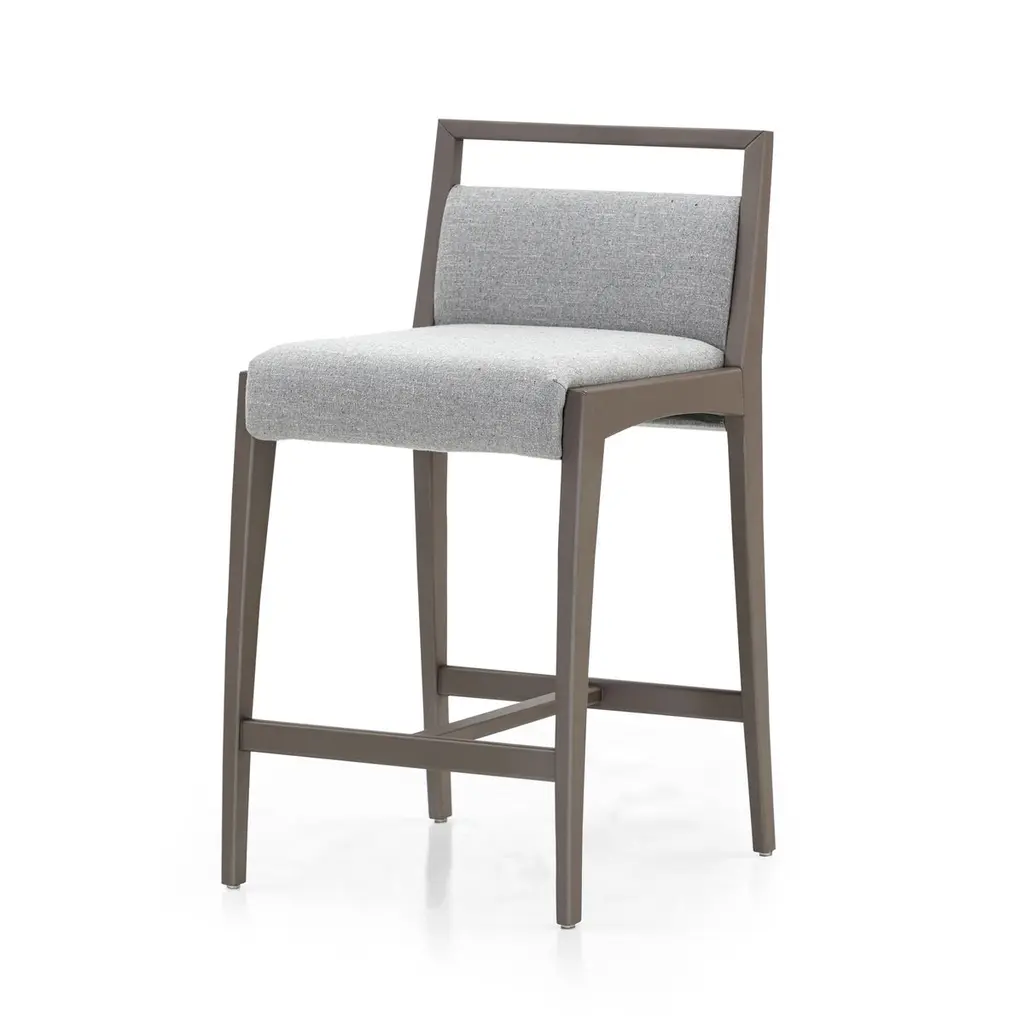 Blending timeless elegance with modern ergonomics, the Sotto Counter Stool by Uultis is crafted for those who value design and function in equal measure. Its chocolate-hued solid wood frame is paired with a gently contoured backrest, upholstered in light gray fabric and padded with medium-density foam for lasting comfort and support. With a subtle vintage inspiration, this stool is ideal for kitchens, counters, or commercial settings where style needs to meet performance.The anatomically curved multilaminated back promotes proper posture, while the soft seat ensures ease during long conversations or meals. The refined lines and smooth edges reflect Uultis' commitment to craftsmanship and detail. As with all Uultis pieces, sustainability is a guiding principle: the stool is made from environmentally conscious materials designed for long-term use.Offered fully assembled and sold individually, the Sotto stool is available in both counter and bar height formats. Choose between fabric or cotton-straw backs to tailor your seating experience. Lightweight yet sturdy, the Sotto is as comfortable as it is striking. Please check availability prior to purchase.