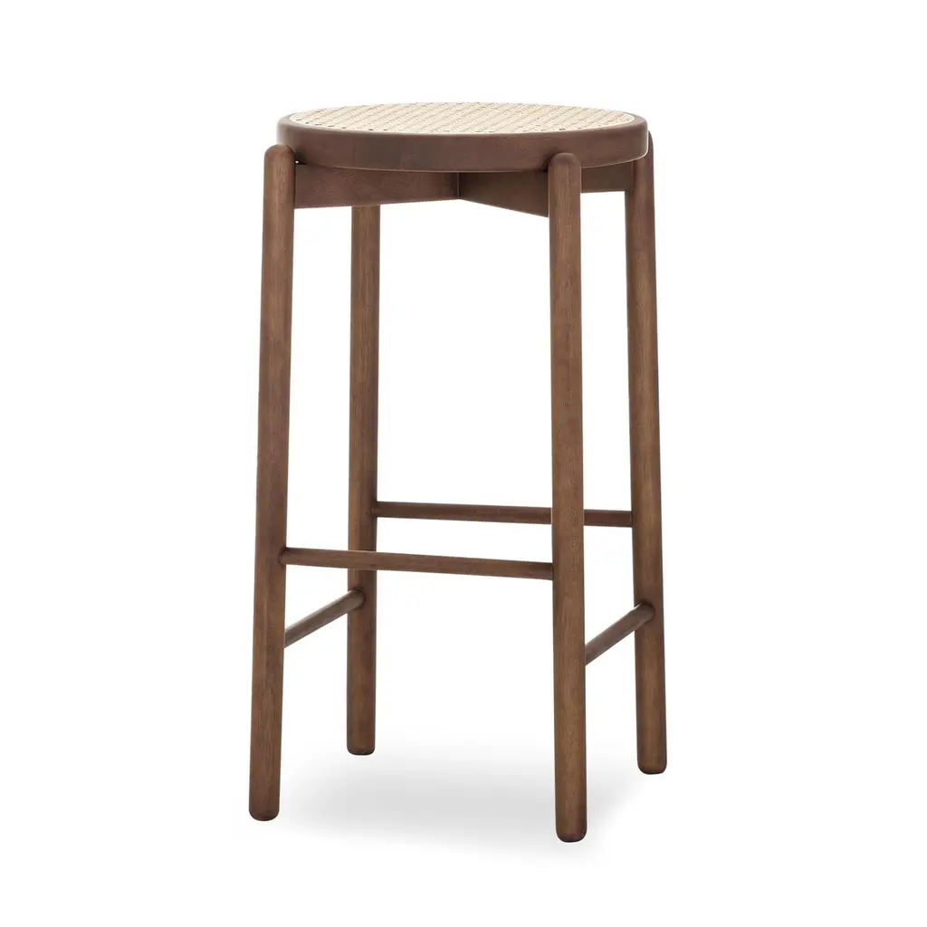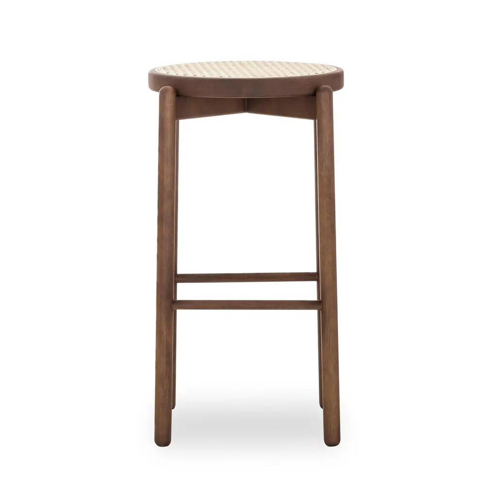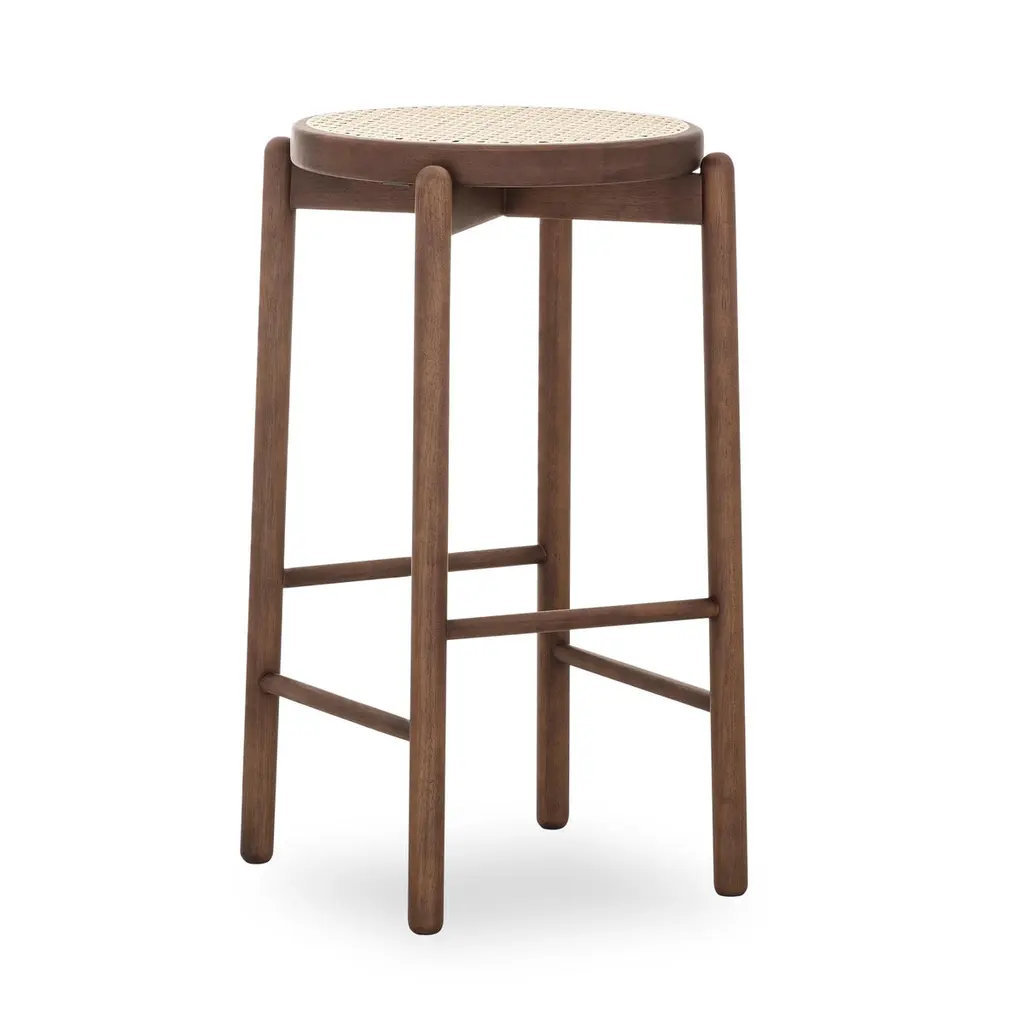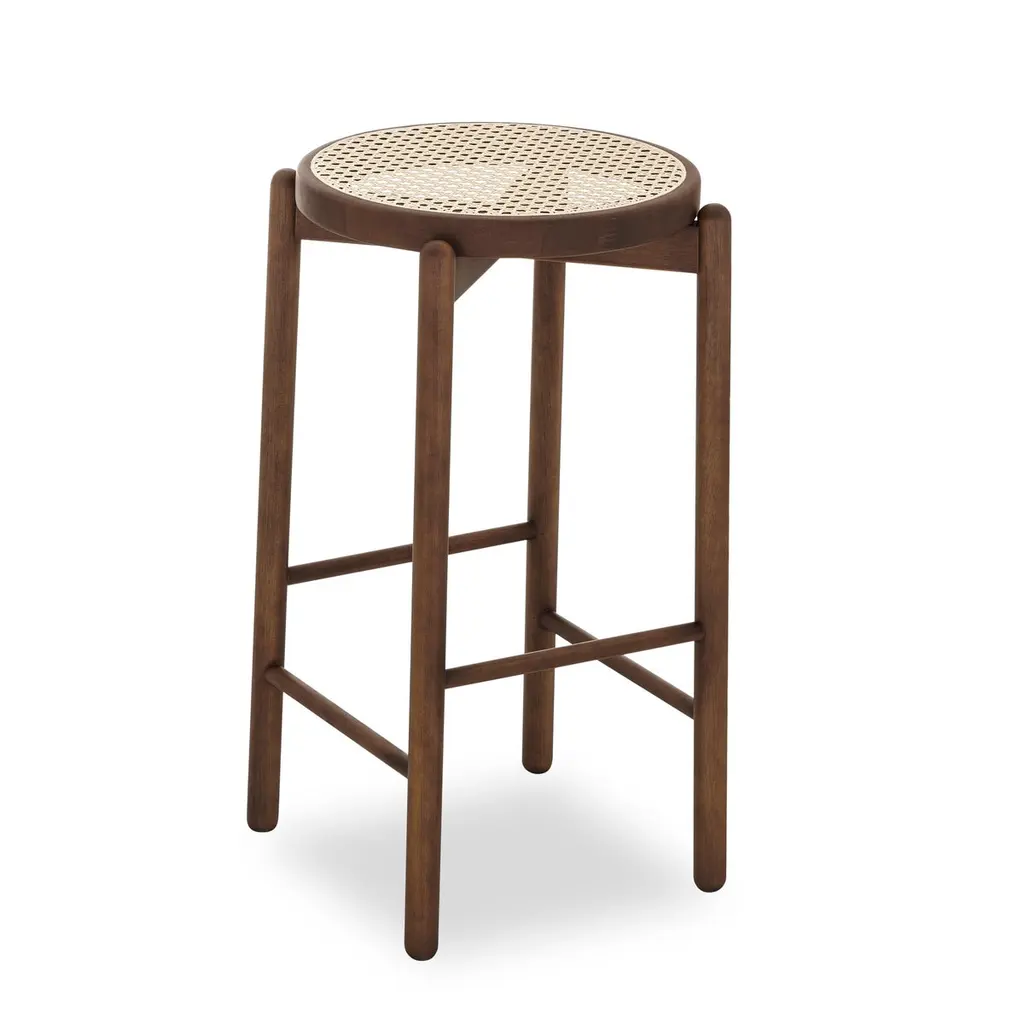 Counter Stool In Walnut Finish With Natural Cane Seat, Maru Design
