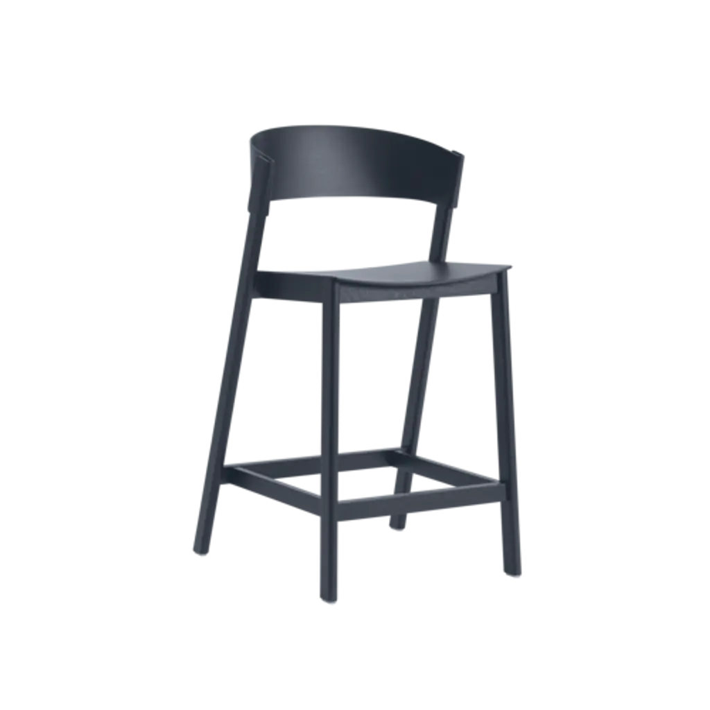 In natural lacquered oak with a buttery cognac-colored leather seat, Muuto offers an fine upholstered version of Thomas Bentzen's wood bar and counter stool. Form-pressed veneer gets a graceful Scandinavian interpretation in the curve of Cover's backrest that folds around the rear legs with elegant simplicity. A similarly cradling rounded seat and integrated footrest assure hours of comfort at mealtime, when entertaining or even at a workplace counter desk.