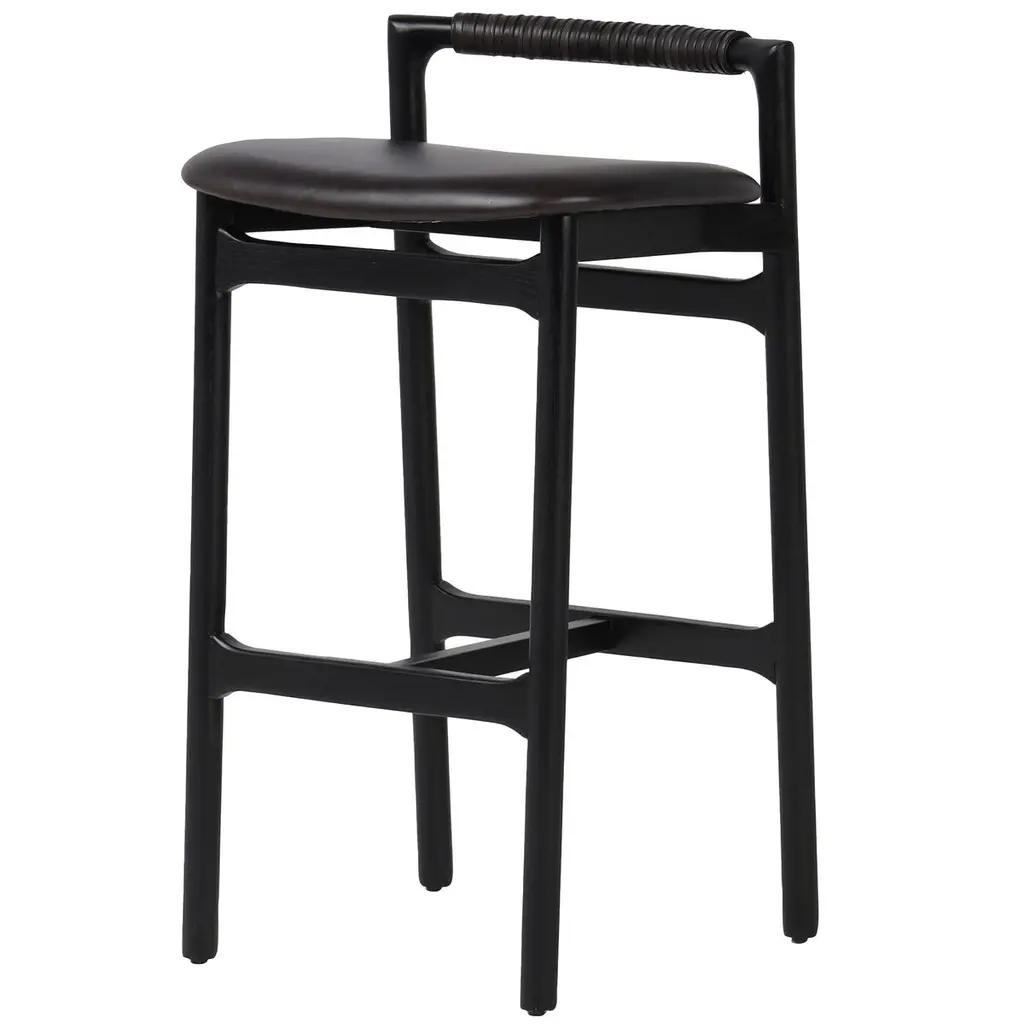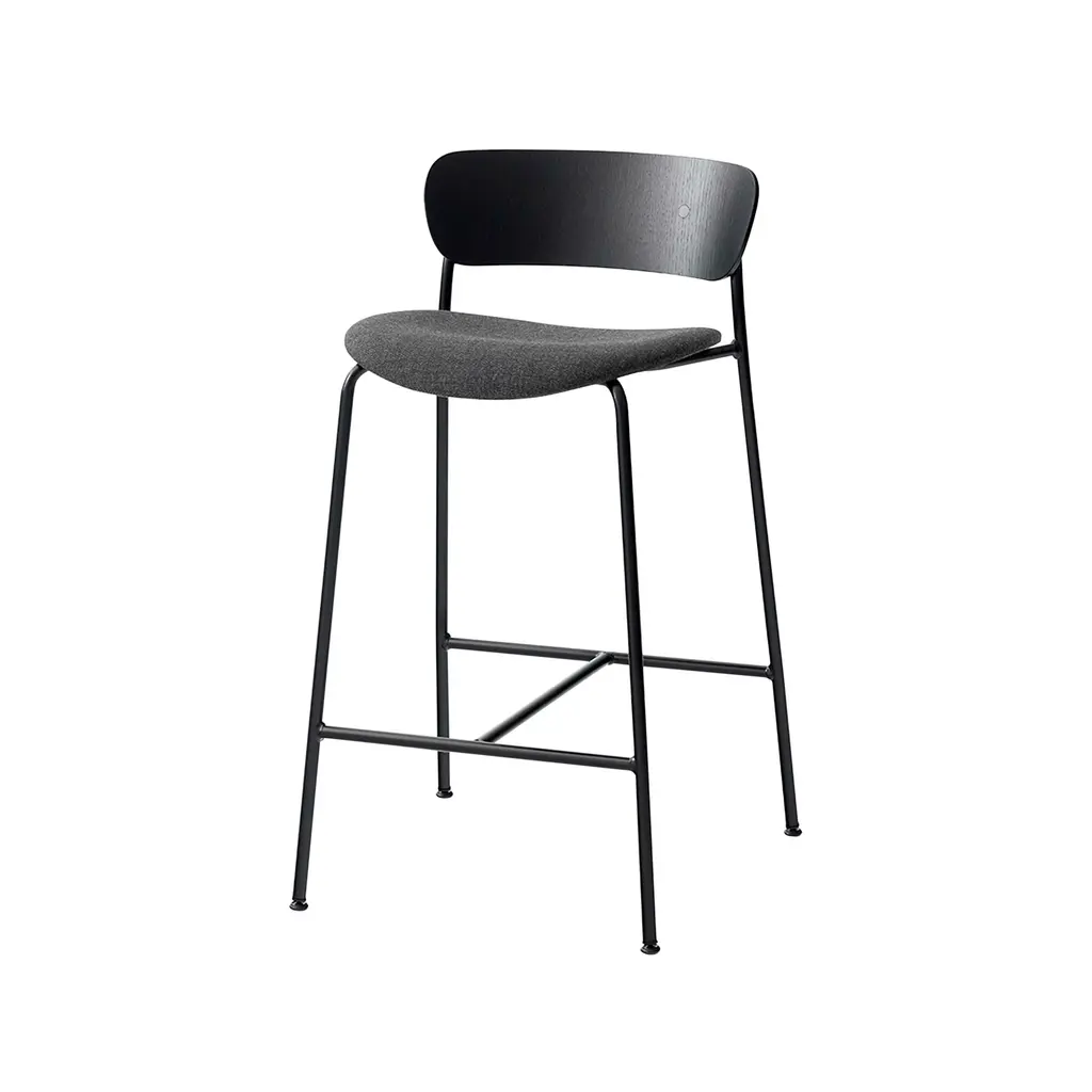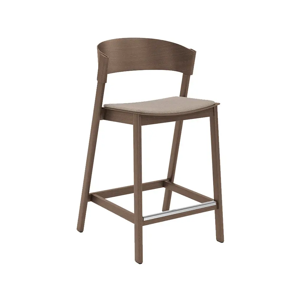 In natural lacquered oak with a buttery cognac-colored leather seat, Muuto offers an fine upholstered version of Thomas Bentzen's wood counter stool. Form-pressed veneer gets a graceful Scandinavian interpretation in the curve of Cover's backrest that folds around the rear legs with elegant simplicity. A similarly cradling rounded seat and integrated footrest assure hours of comfort at mealtime, when entertaining or even at a workplace counter desk.
