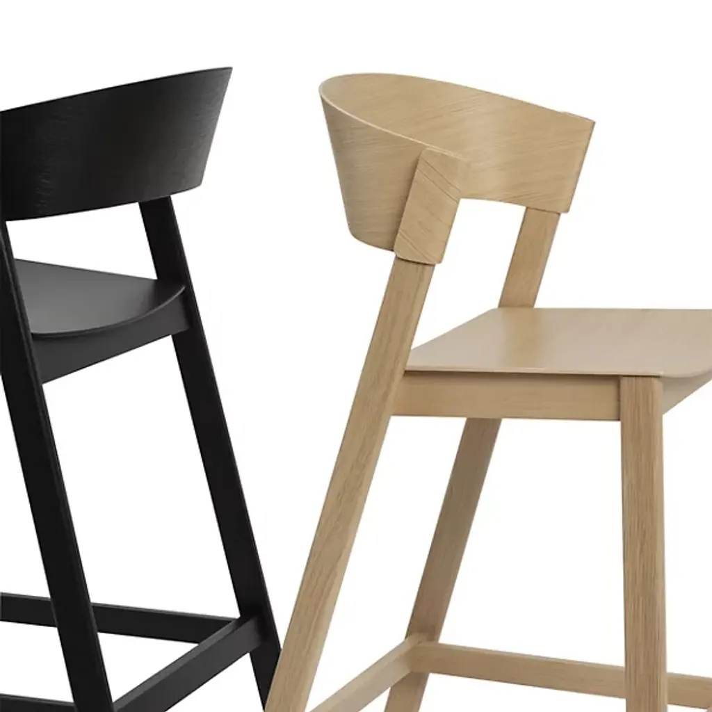 Gather for happy hour with the Cover Stool by Muuto. Designed by Thomas Bentzen, this bar stool is crafted out of fine wood. The neatly sloping seatback gives your back support while seated. Sturdy legs are connected by a linear frame that joins the stool at its base. This decorative piece is made available in both bar stool and counter stool varieties so that you may choose the seat that most fits your needs. This functional work of art upholds Thomas Bentzen’s belief in designing products that exemplify Scandinavian design while fulfilling human needs.