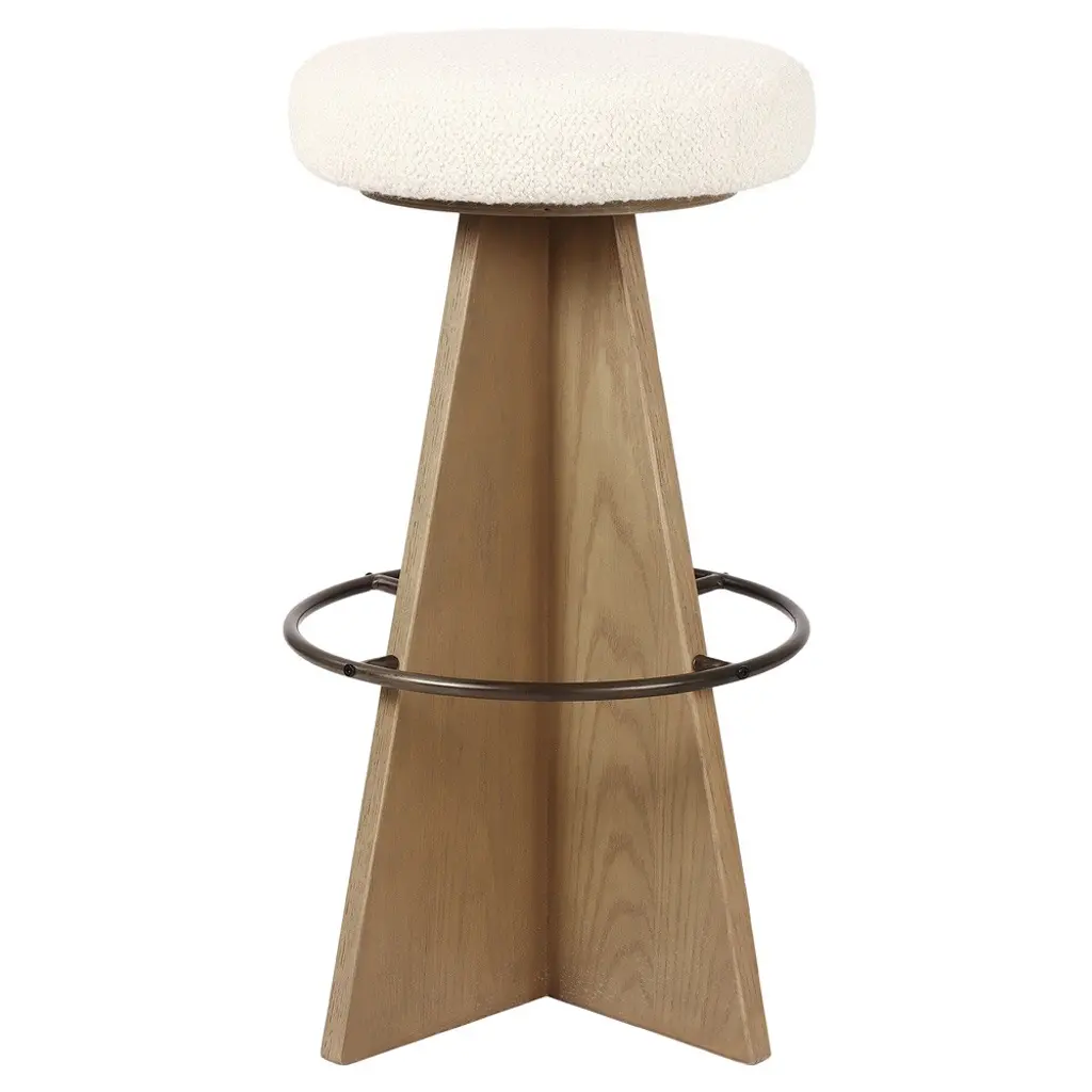 Custom Elm Wood Counter Stool With Upholstered Seat