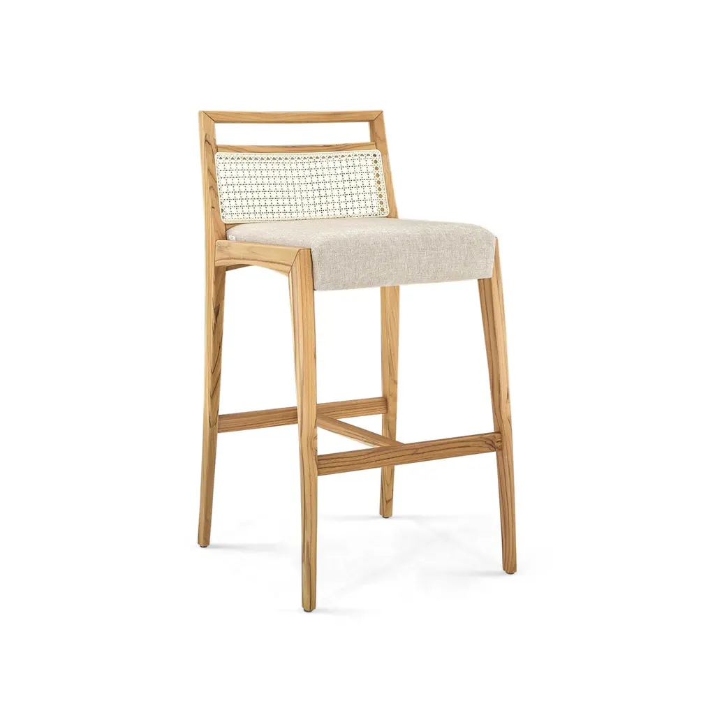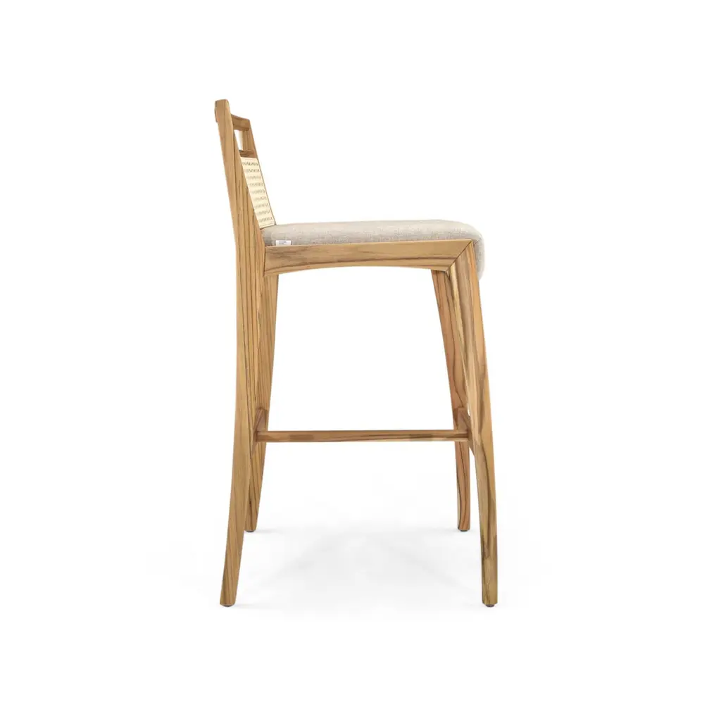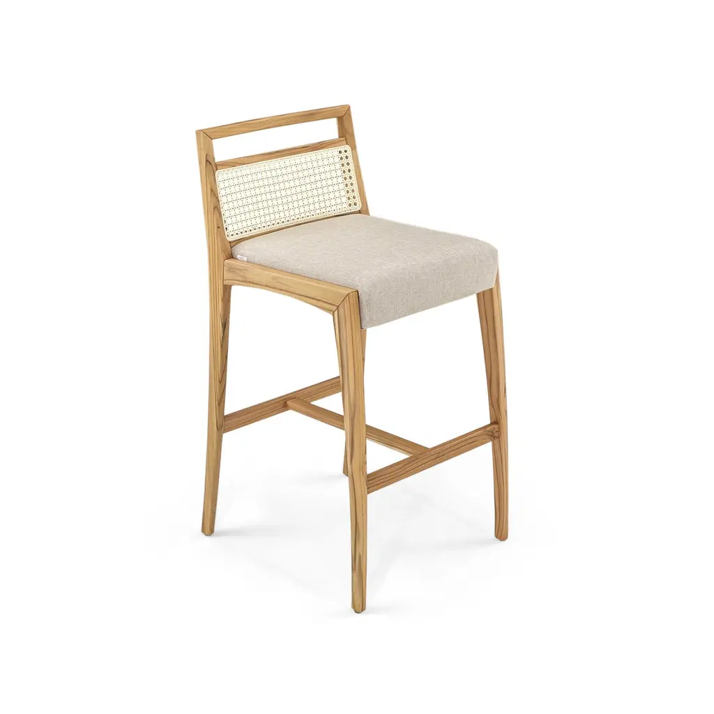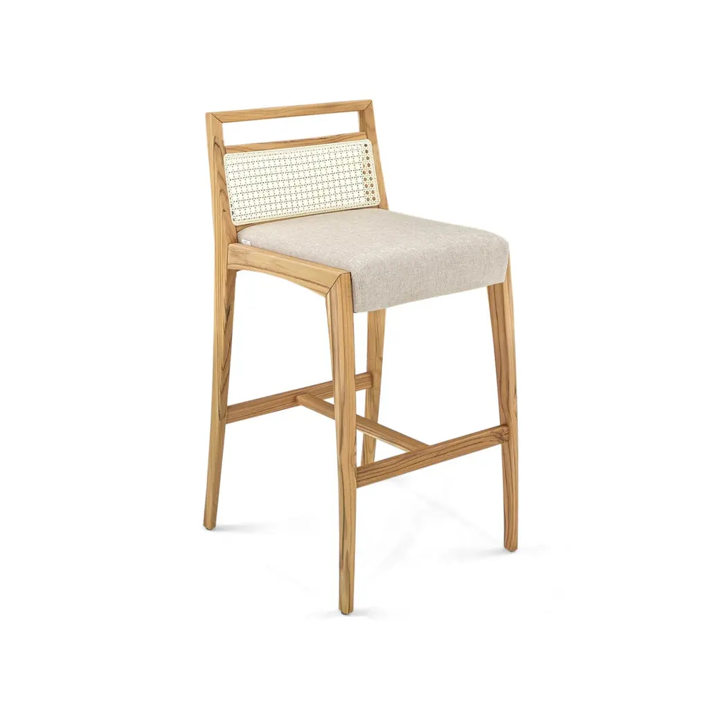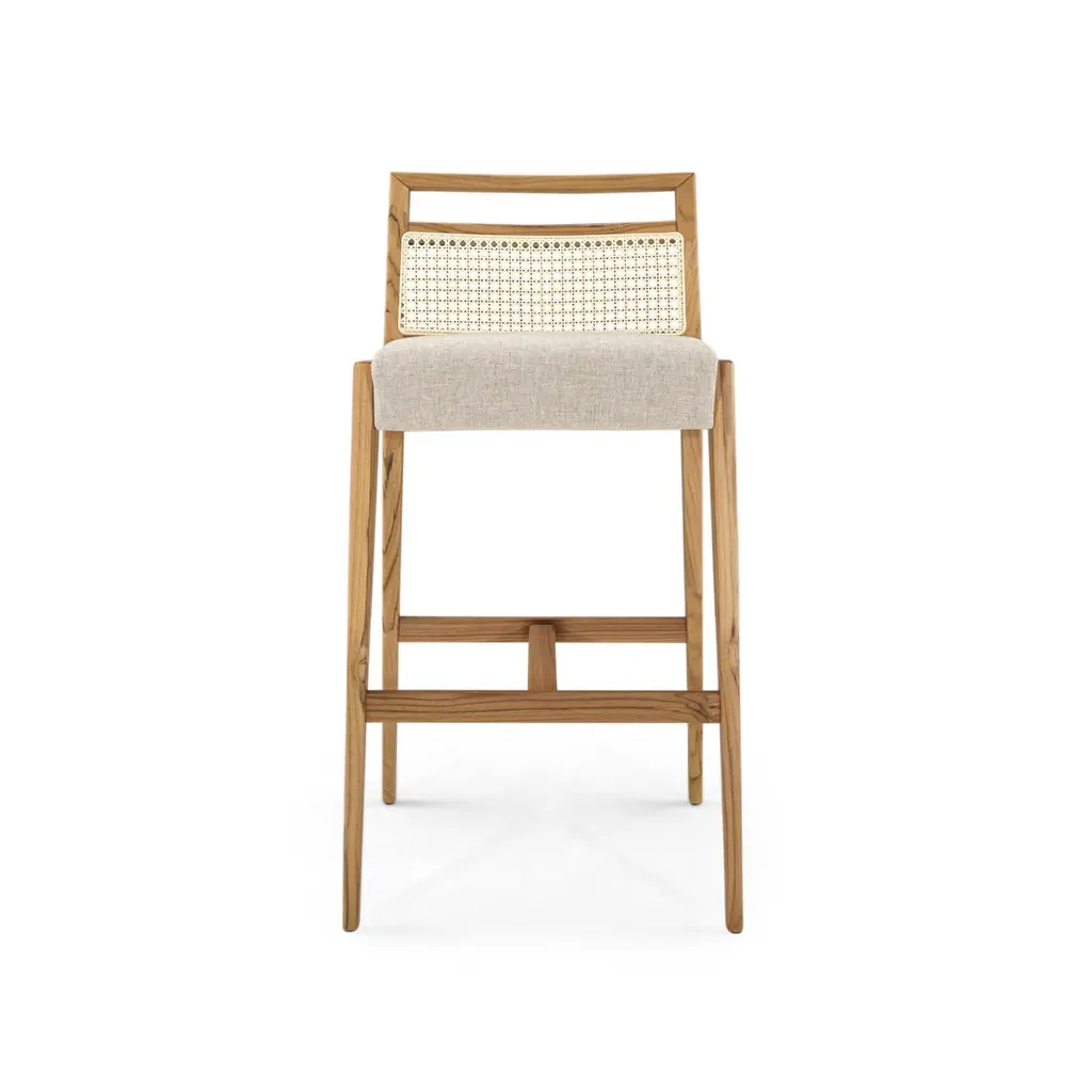Customizable Teak Counter Stool With Cane Back And Beige Upholstery - Sotto Line